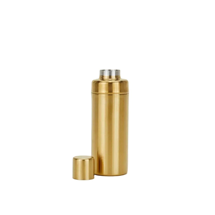 Appealing brass finish, with a squared-off body and cap. Shiny enough for your next fancy mixer, but simple enough for your next post-work cocktail.