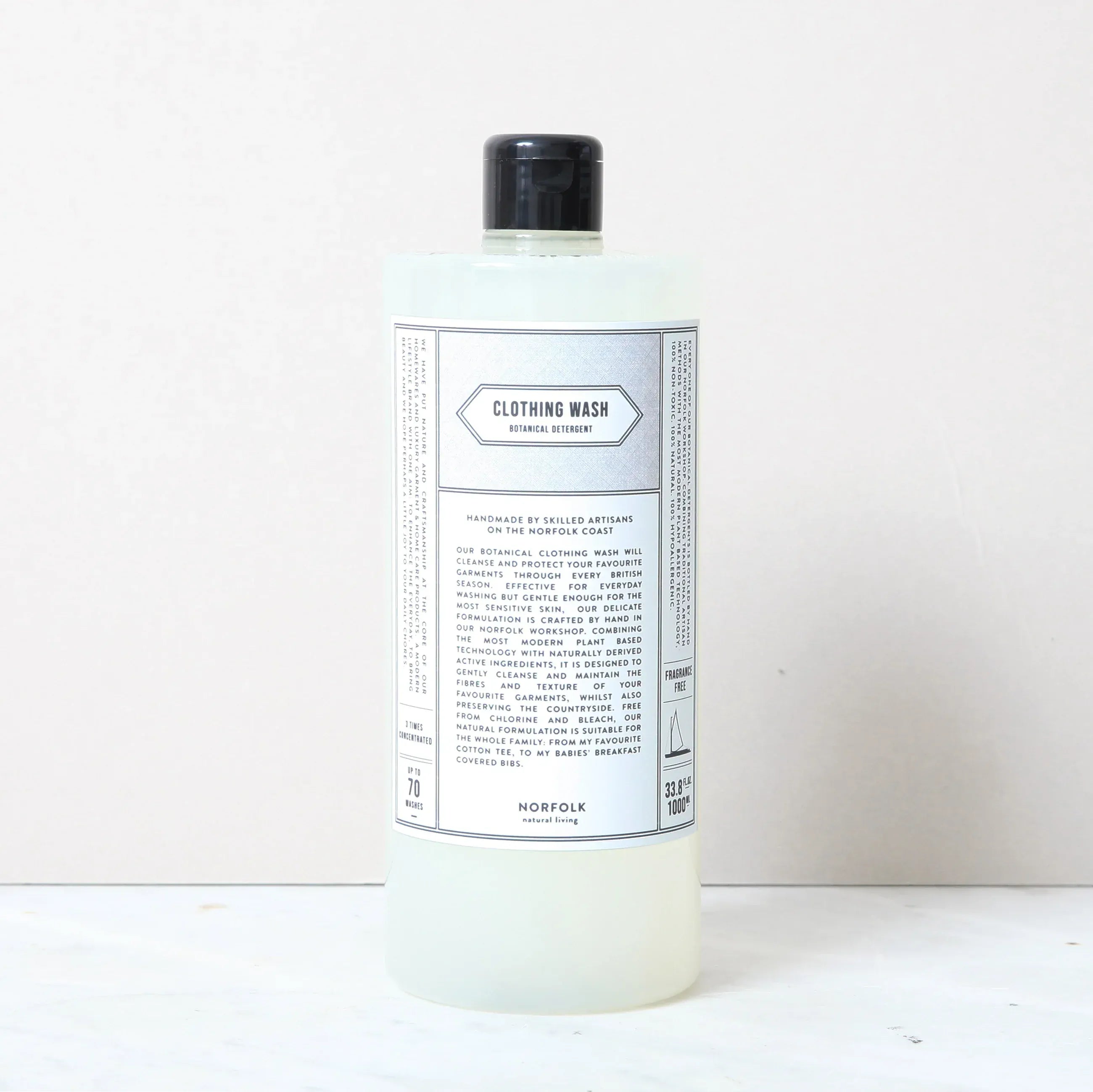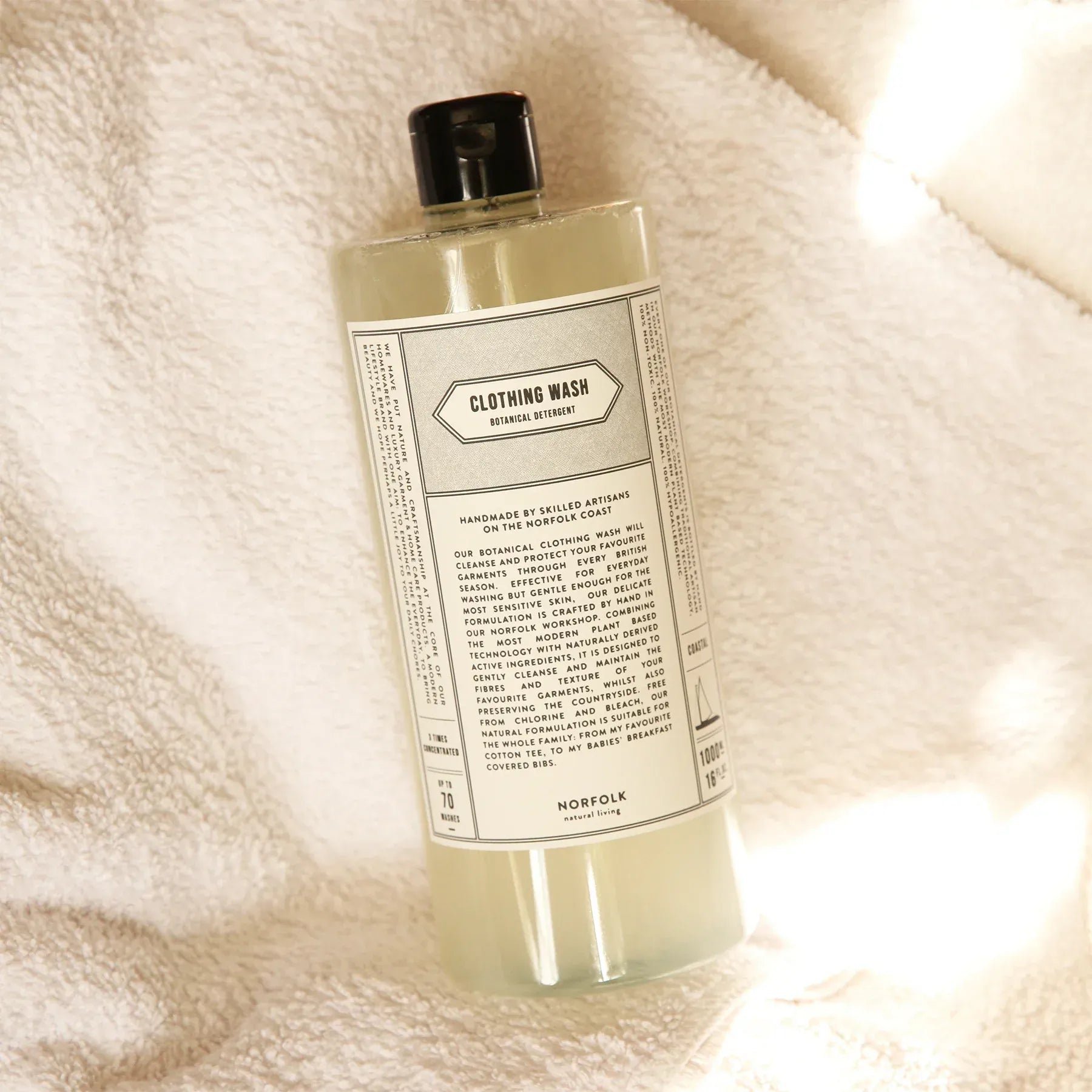 Cleanse and protect your delicate garments with Norfolk Natural Living's Clothing Wash, Coastal. Crafted with modern plant-based technology and natural active ingredients, this highly concentrated 1L bottle offers up to 70 washes that brighten and fight odors and stains. Gentle enough for sensitive skin, it is a reliable solution for every day washing. Enjoy beautifully refreshed clothes with added protection.
