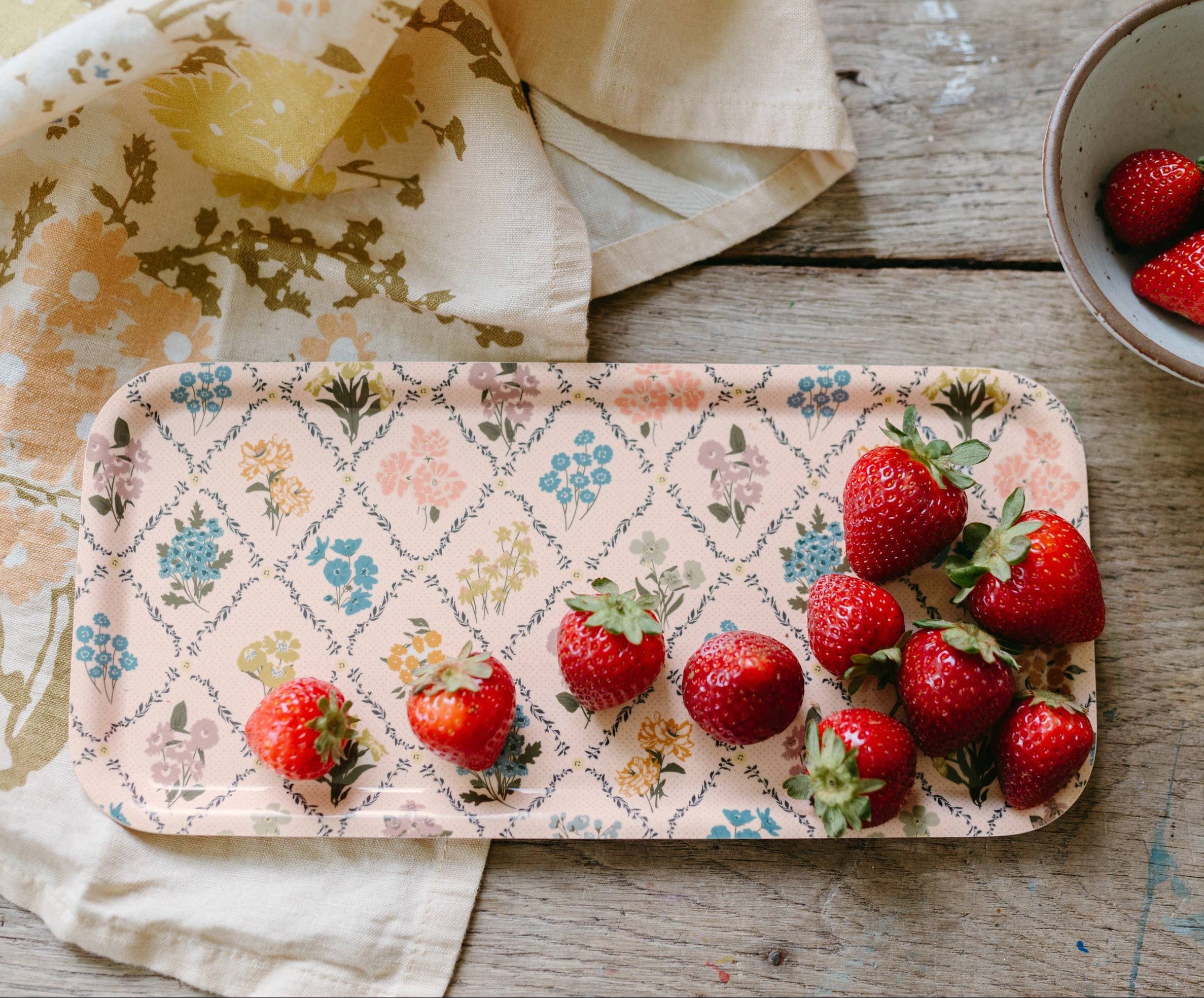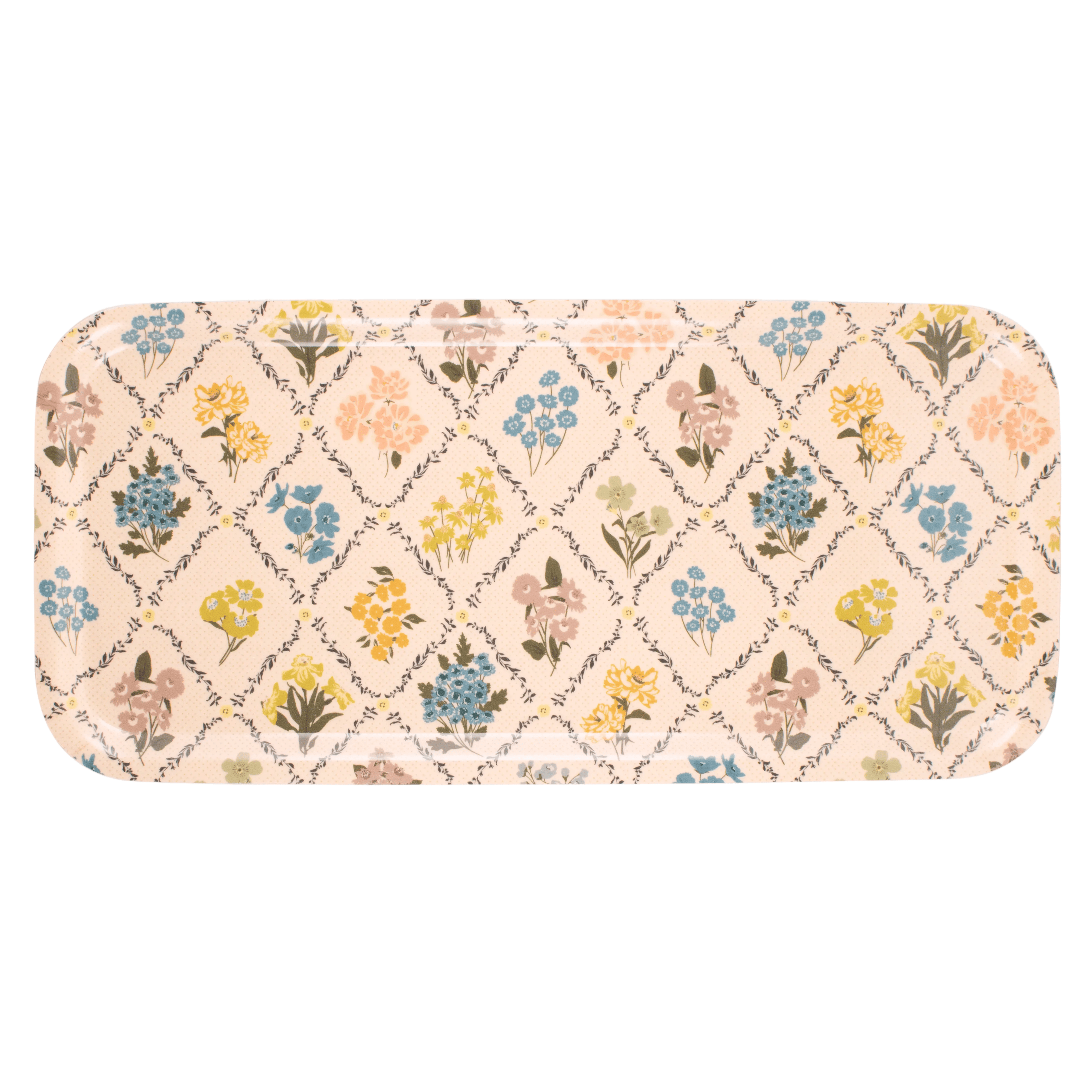 Bring the charm of the garden into your home with the Trellis Tray. Crafted from pressed birchwood and printed with a delicate wildflower trellis pattern, this lightweight and sturdy tray is perfect for serving tea and treats, holding essentials, or styling your space with intentional beauty. It is dishwasher safe, food safe, and entirely charming, making it a functional piece of art for your home.