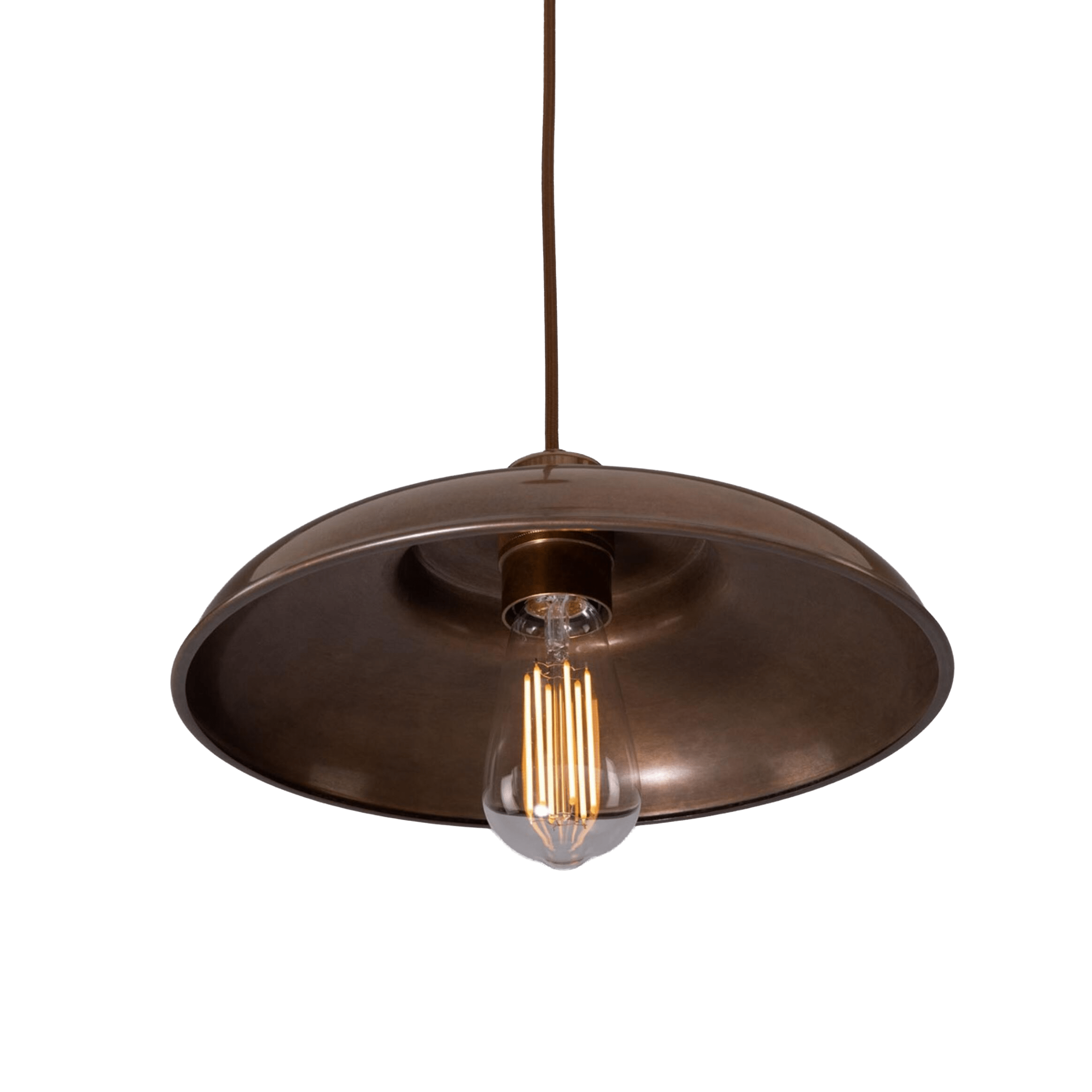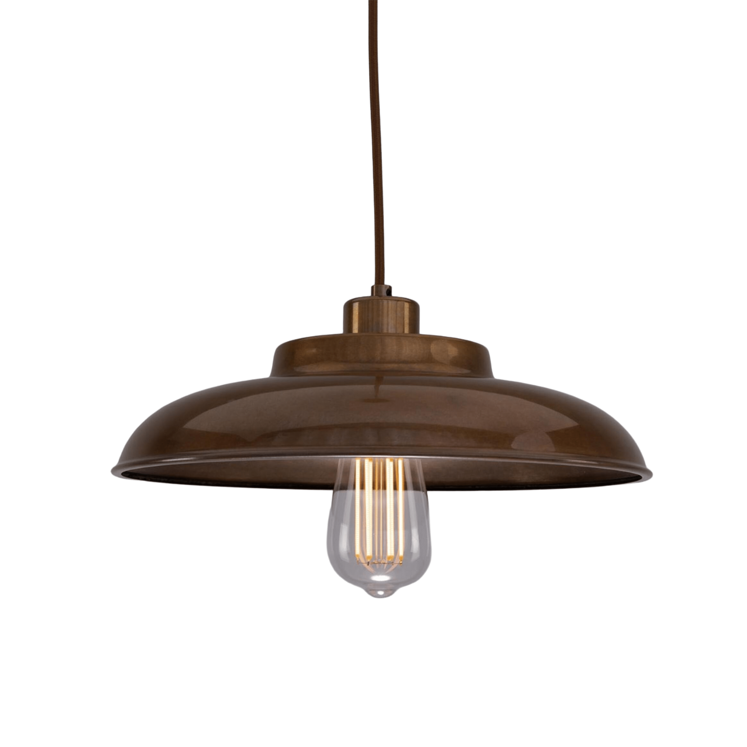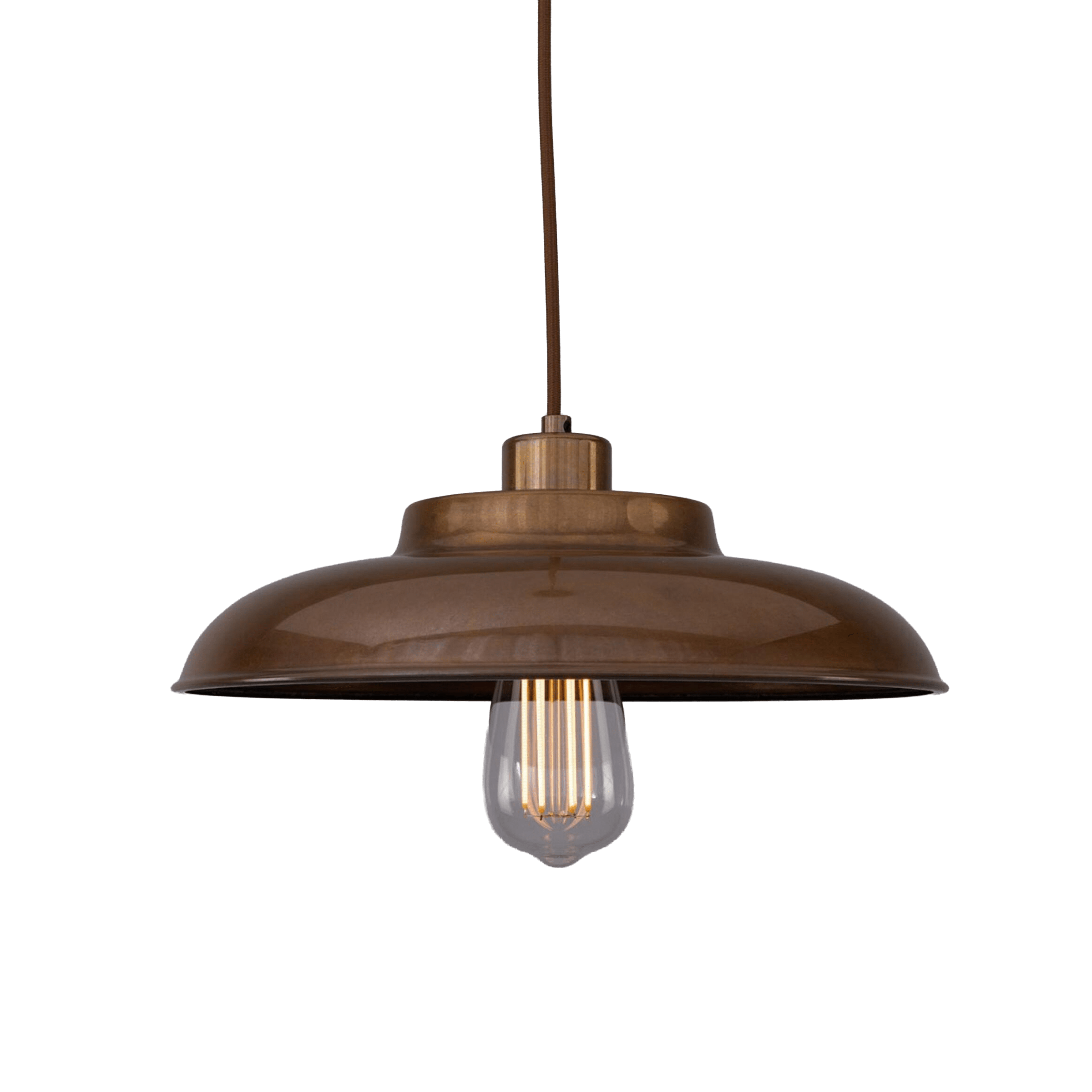 The Telal pendant combines traditional factory-style lighting with a clean, minimalist design, showcasing a simple yet captivating shape. Made from brass, this pendant features a softly curved dome shade with a sleek rim, hanging from a braided fabric cord that adds a touch of vintage charm. The wide shade directs light downward, making it an excellent choice for kitchen islands, dining tables, or work areas. Available in various finishes, it enhances both industrial and modern interiors. Perfect for both task and ambient lighting, the Telal pendant adds structure and brightness to your indoor lighting arrangements. Bulbs are sold separately. View the entire Telal Industrial Light Collection here.