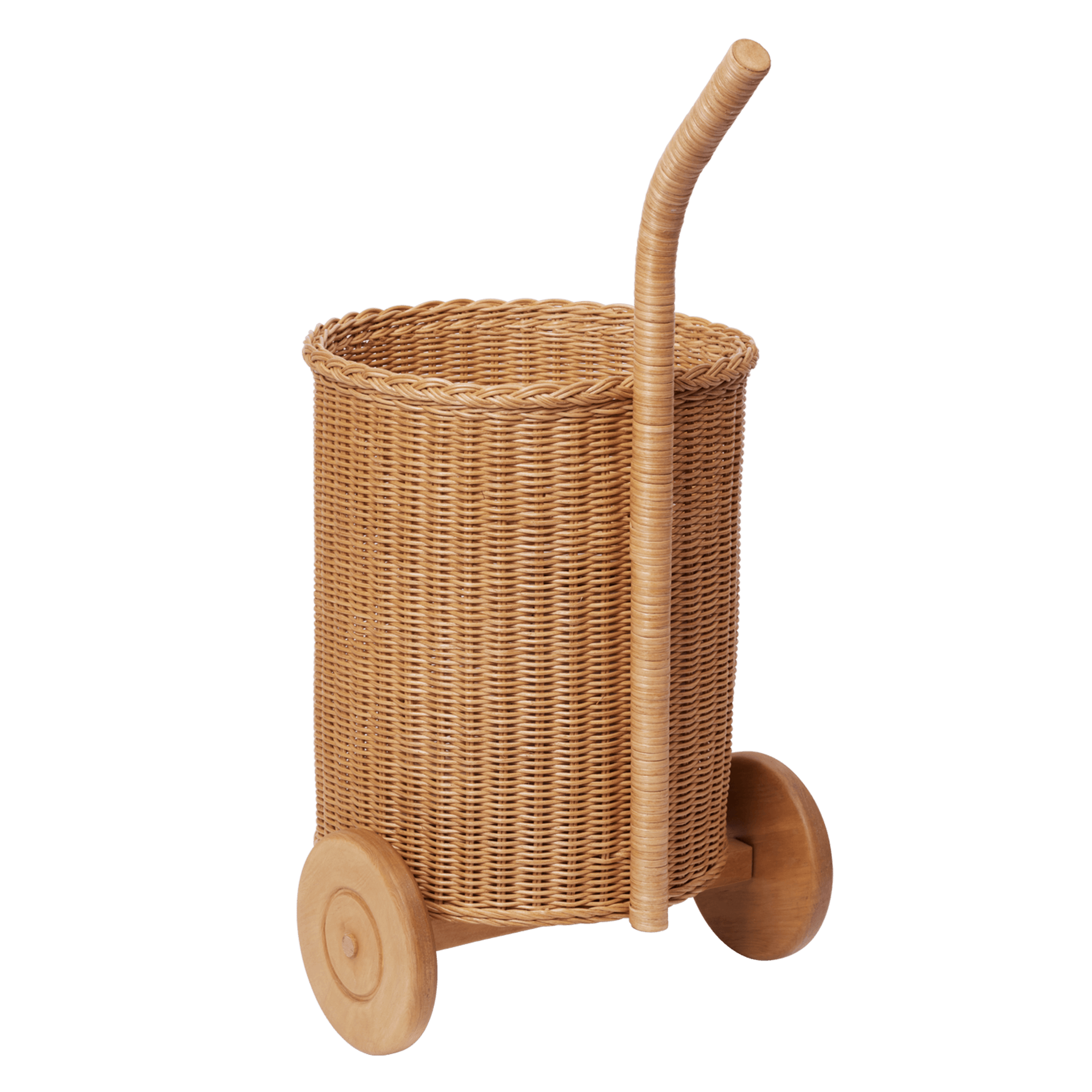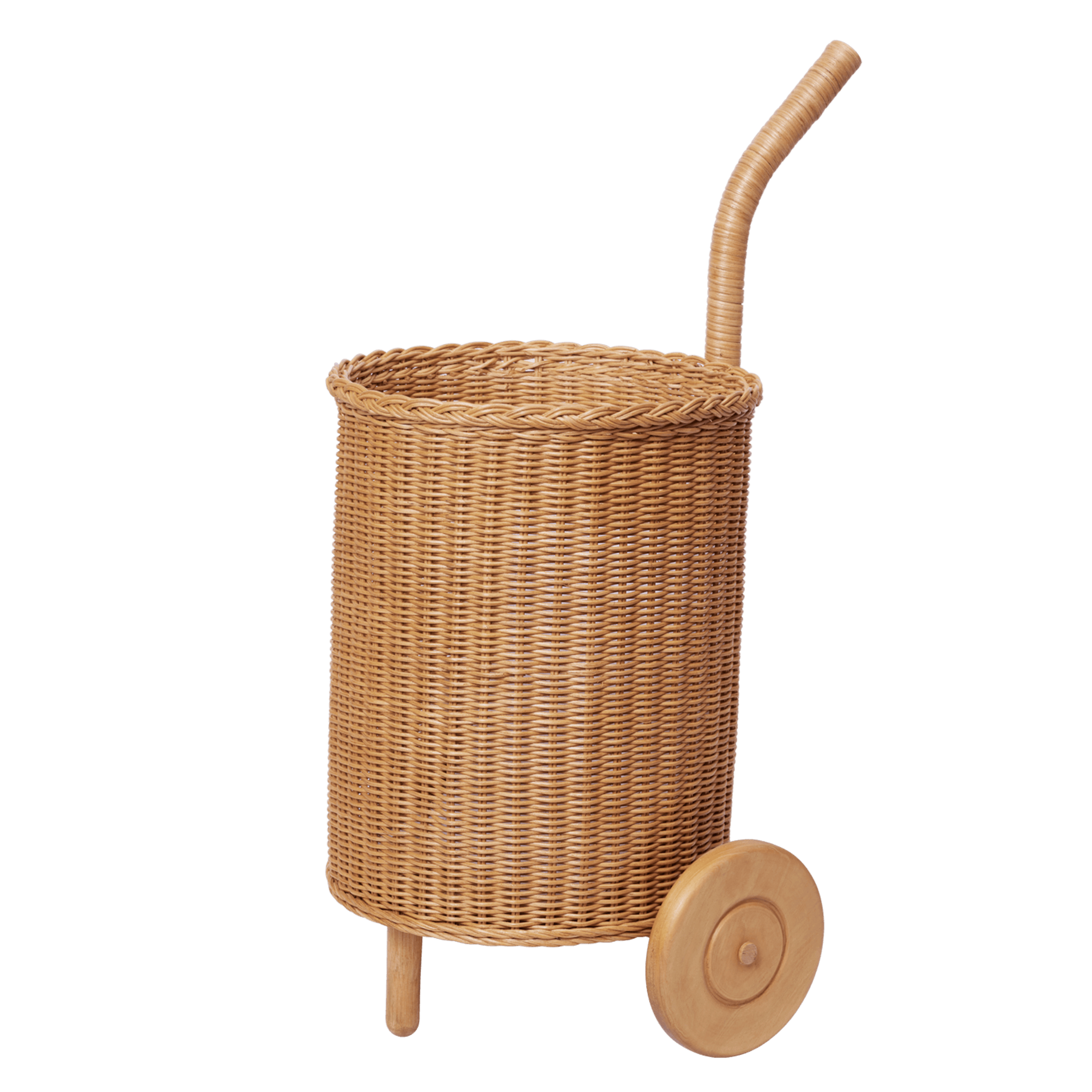 The Tukki Trolley is a playful storage piece for your little one’s space. Crafted from natural rattan with smooth pinewood wheels, it’s easy to move and gentle on floors. The soft, cylindrical shape and bent rattan handle are designed for small hands, making it ideal for storing toys, books or dress-up favorites.