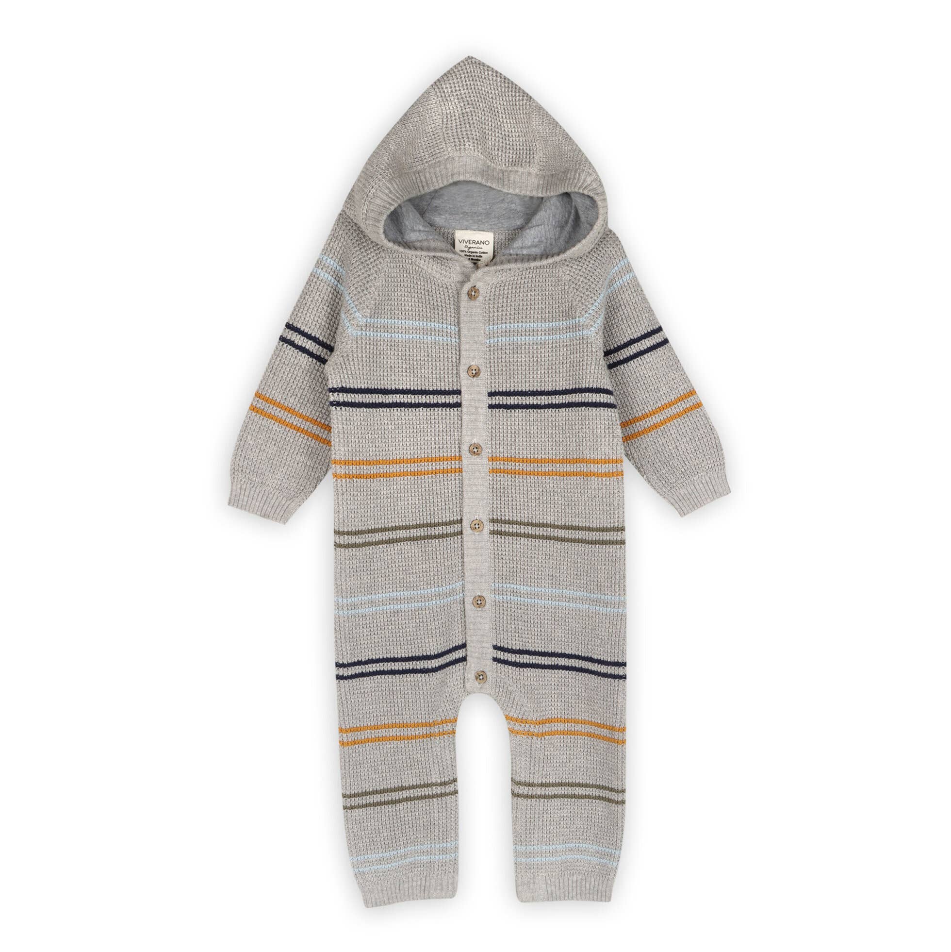 Classic Stripe Knit Hooded Baby Jumpsuit