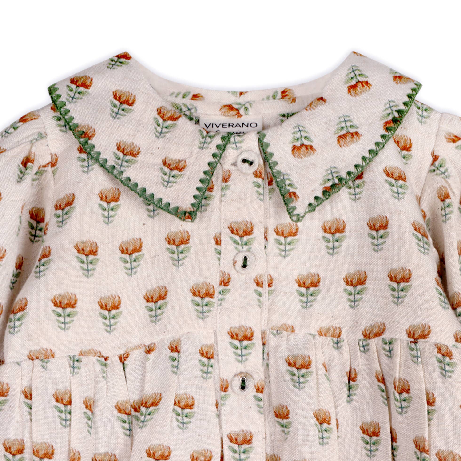 This all-season, super soft linen-blend baby romper and matching headband set offers a cozy and stylish option for your little one. Featuring traditional Indian hand block prints, the set is machine washable, durable, and long-lasting. Made from eco-friendly, chemical-free, non-toxic, pure, natural, and organic materials, these baby clothes prioritize safety and sustainability. Ethically produced in India, the collection supports better livelihoods for smallholder farmers. Established in 2013, Viverano is an American family-owned brand dedicated to creating high-quality, eco-friendly, and pure baby apparel. Renowned for its soft hand feel and superior craftsmanship, Viverano’s lightweight, all-season outfits allow parents to pamper their babies with natural, non-toxic clothing that combines comfort with environmental consciousness. Experience 'Organic Comfort' with Viverano, where caring for your baby and the planet go hand in hand.
