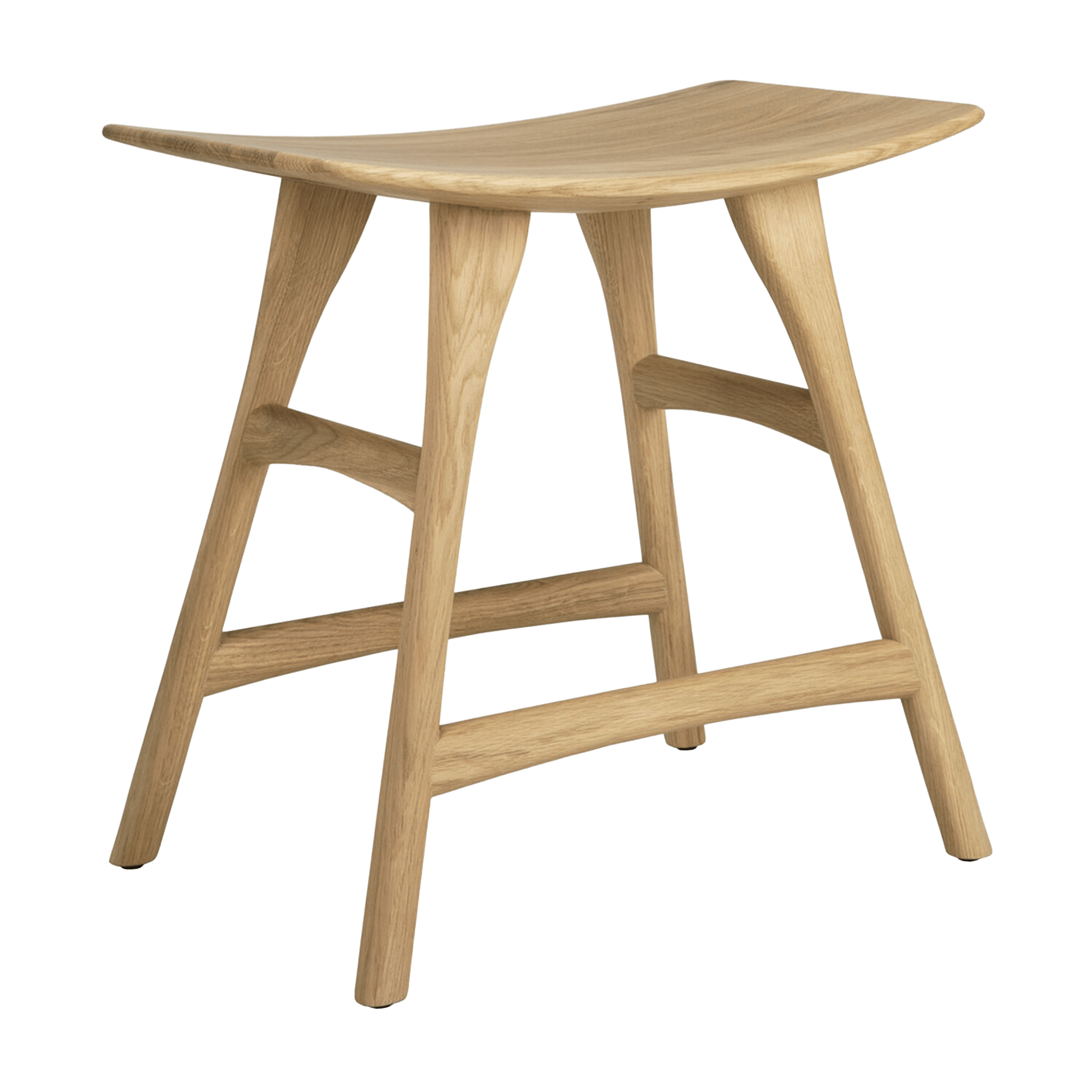 The Osso Stool is one of our most popular pieces because of its versatility. This oak stool offers comfortable seating in your dining room, and are also great by themselves against a well, or next to a sofa. Also available in a counter height and bar height version. The multiple stool heights add a wide array of possibilities - as an elegant and sturdy kitchen stool, dining stool, or office stool. Available in Oiled Oak, Varnished Black Oak, or Teak.