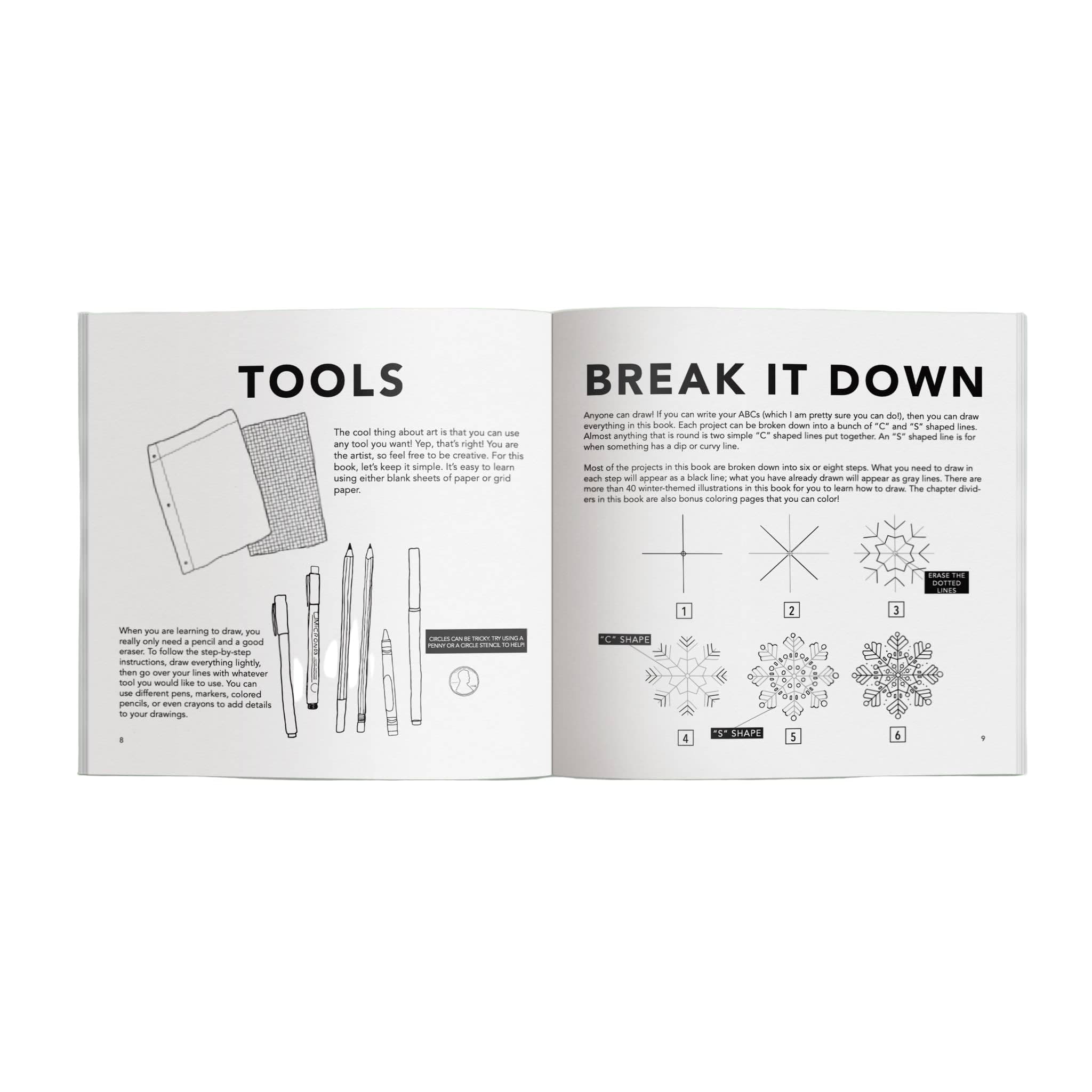 A festive addition to your holiday gift inventory, this winter-themed drawing book offers 5-minute art lessons that are perfect for kids ages 5–12. From bestselling artist Alli Koch, this title makes it easy for young artists to build drawing skills while having fun—no experience required. Great for art class, snow days, or stocking stuffers!