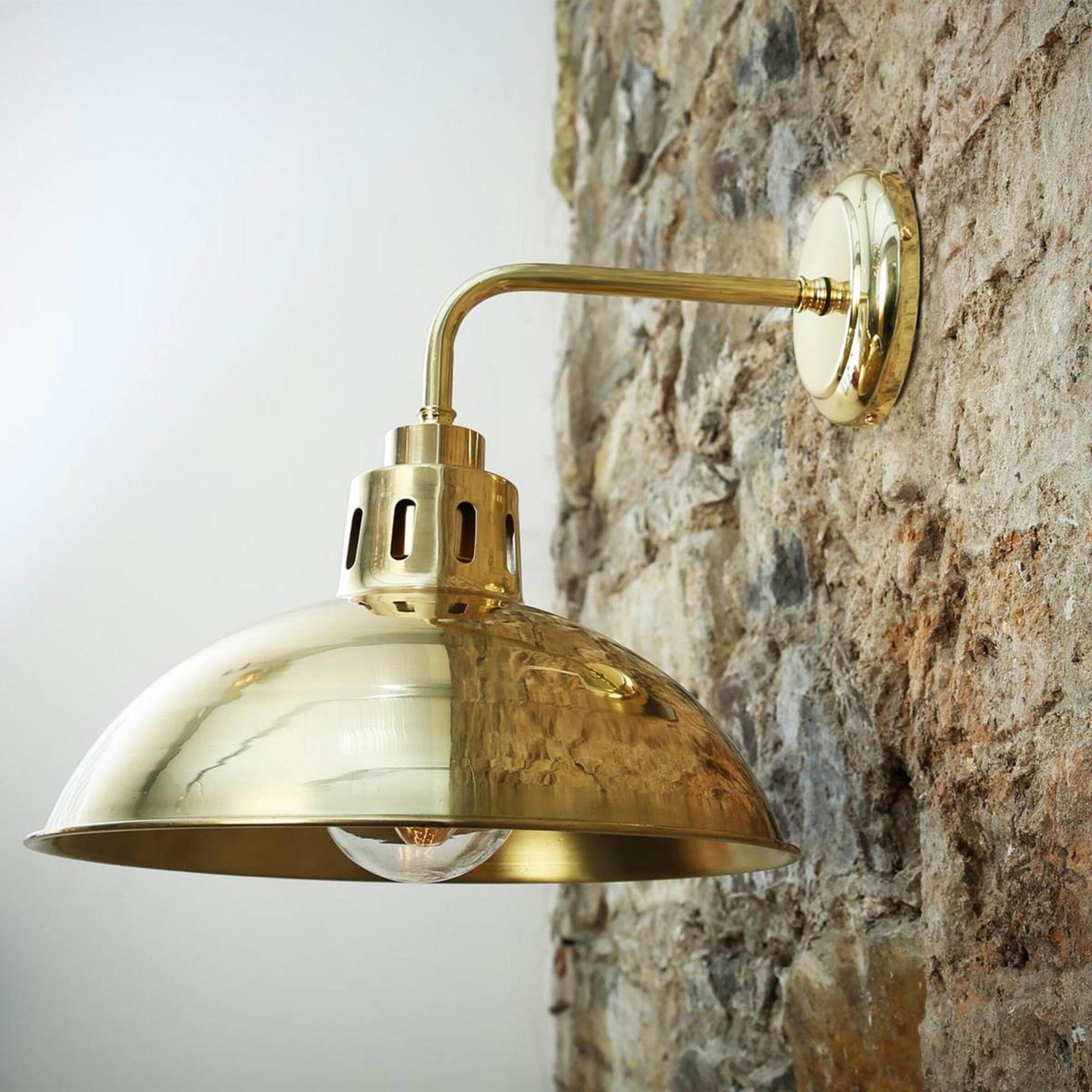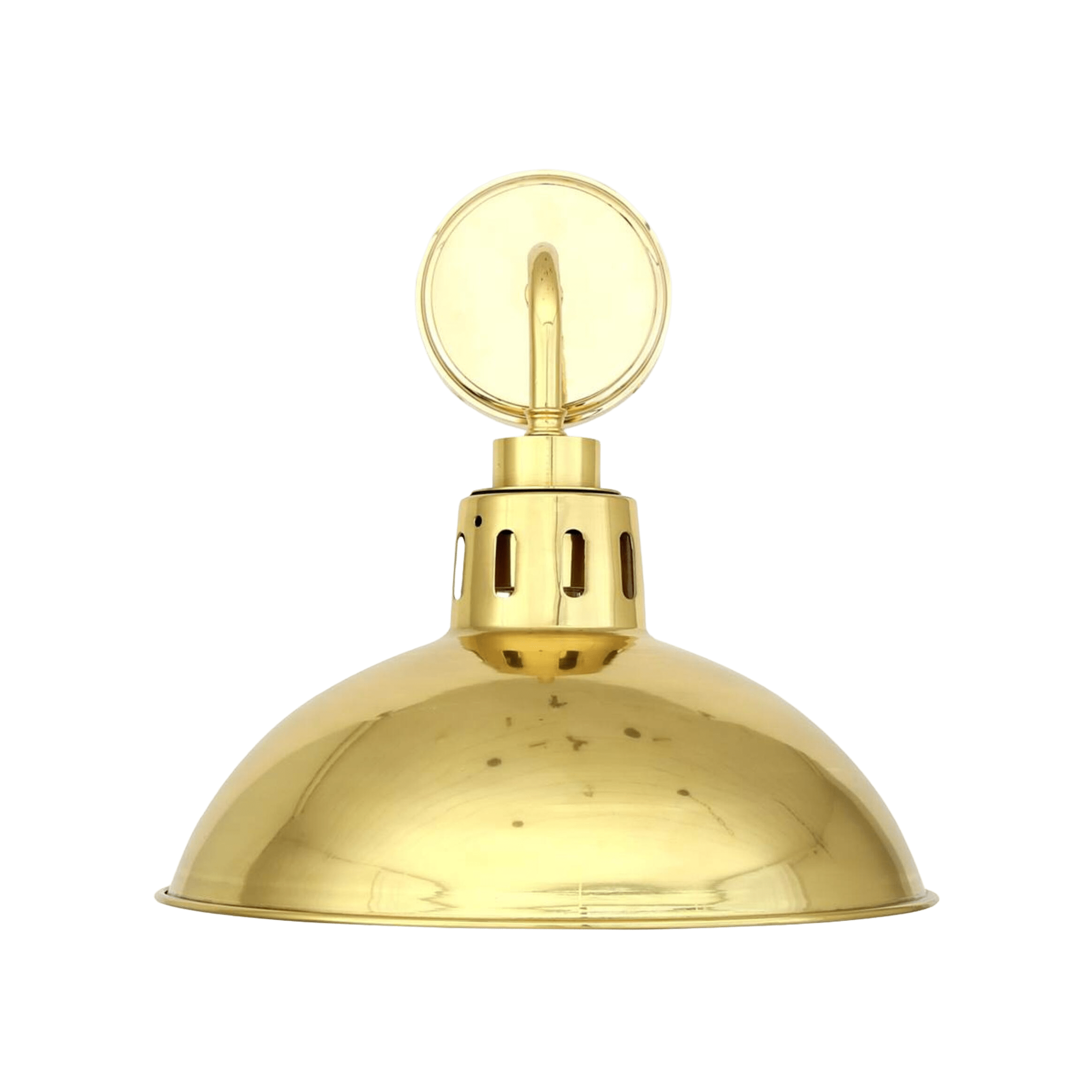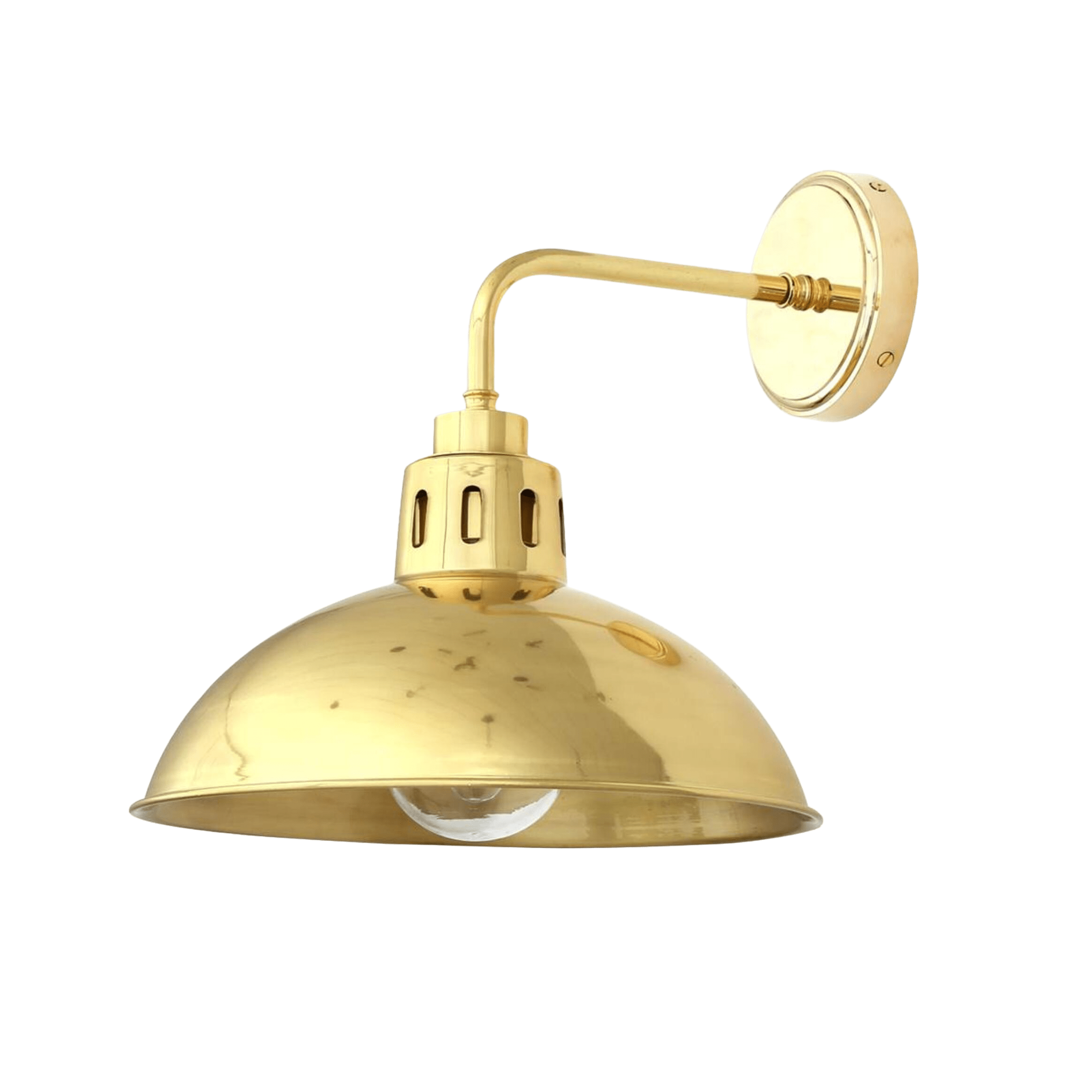 The Talise Industrial Outdoor Wall Sconce combines vintage industrial style with high-quality craftsmanship, making it a striking addition to any room. Handcrafted from solid brass, this sconce features a curved arm and vented design that adds to its classic appeal. The wide, shallow shade directs light downward, creating a warm and focused glow. Ideal for kitchens, cafés, or outdoor patios, the Talise Sconce brings both character and practical lighting to any environment. View the full Talise Outdoor Light collection here. Bulb is sold separately.