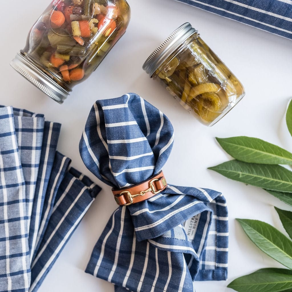 Simple leather napkin rings with an equestrian influence. Made from bridle leather with a brass rivet, they add a subtle detail to the table.