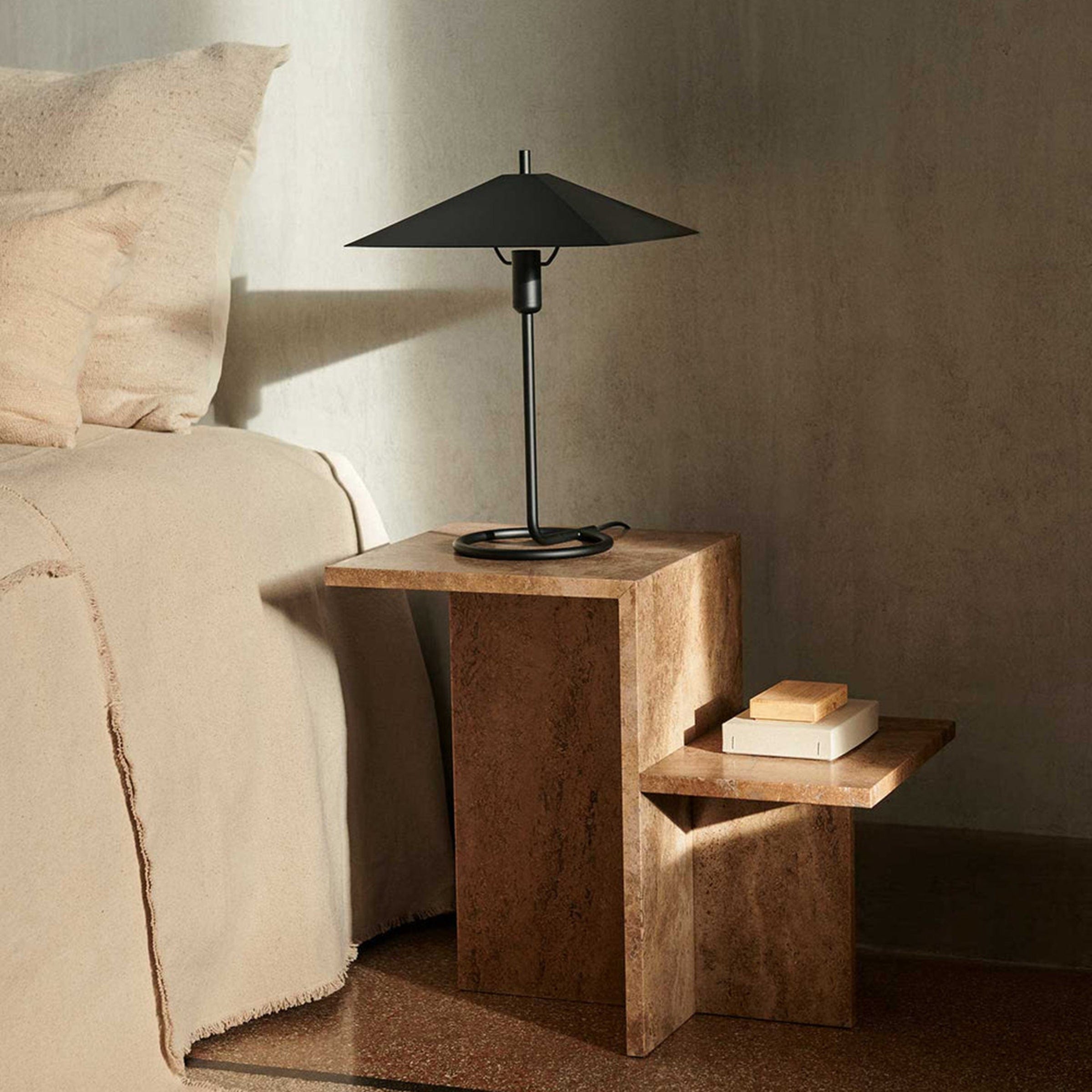 Characterised by its distinctive graphic lines and classic silhouette, the Filo Table Lamp is a timeless design piece. The architectural shape of the shade, combined with the white satin finish of the inside, beautifully reflects the light onto the table, making it ideal for a working situation at the desk. The Filo Table Lamp is available in various finishes to make room for personality.