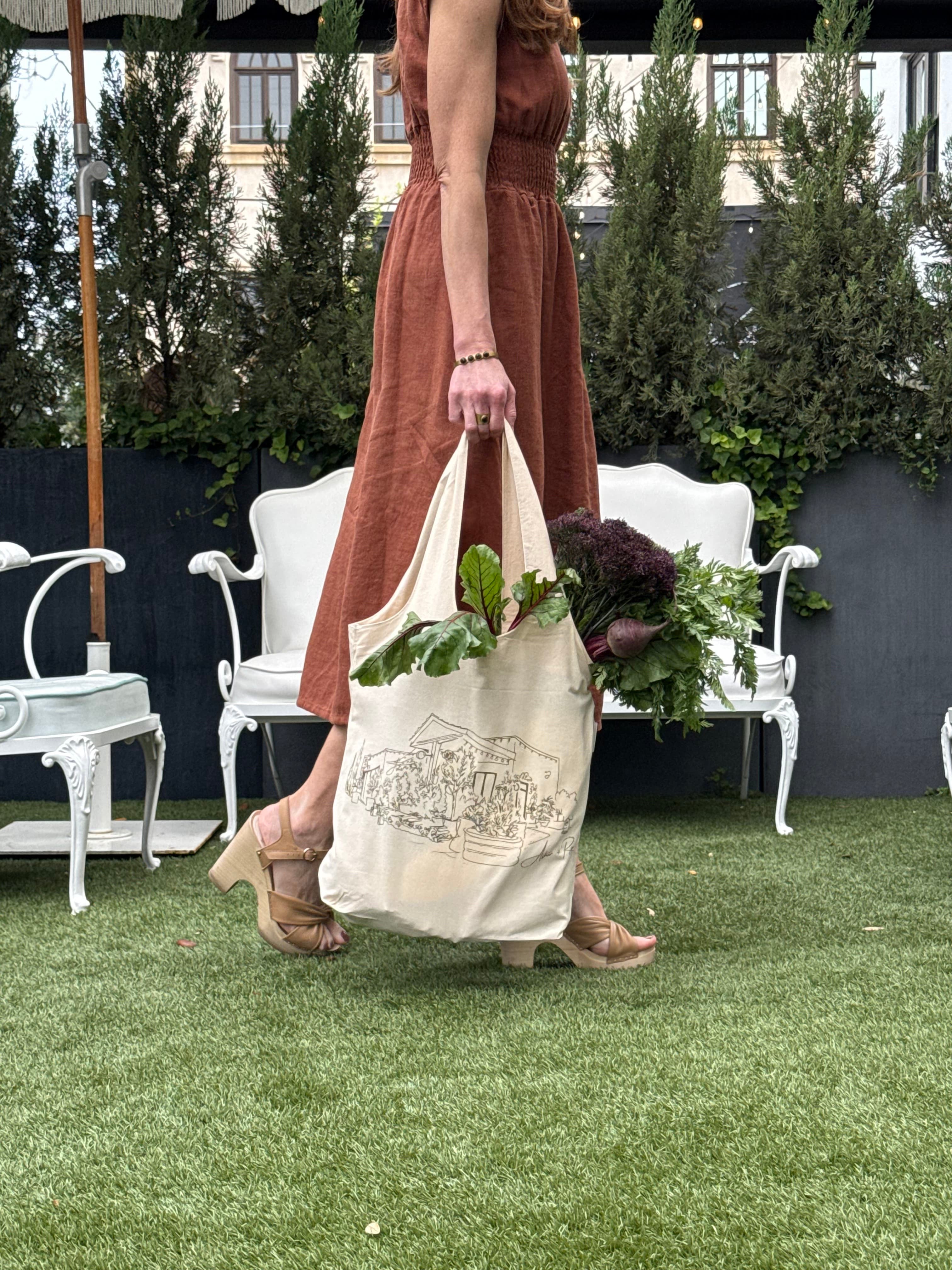 Illustrated by NoNo Flores, this tote captures the shop’s exterior at the corner of Jones and Whitaker. A simple way to carry a piece of the space with you.