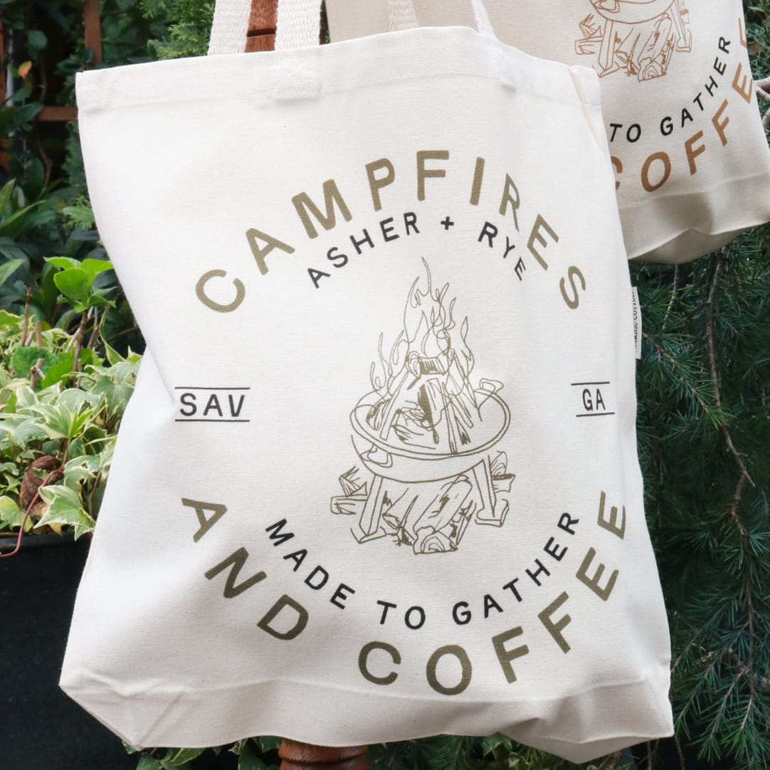 Campfires + Coffee Tote