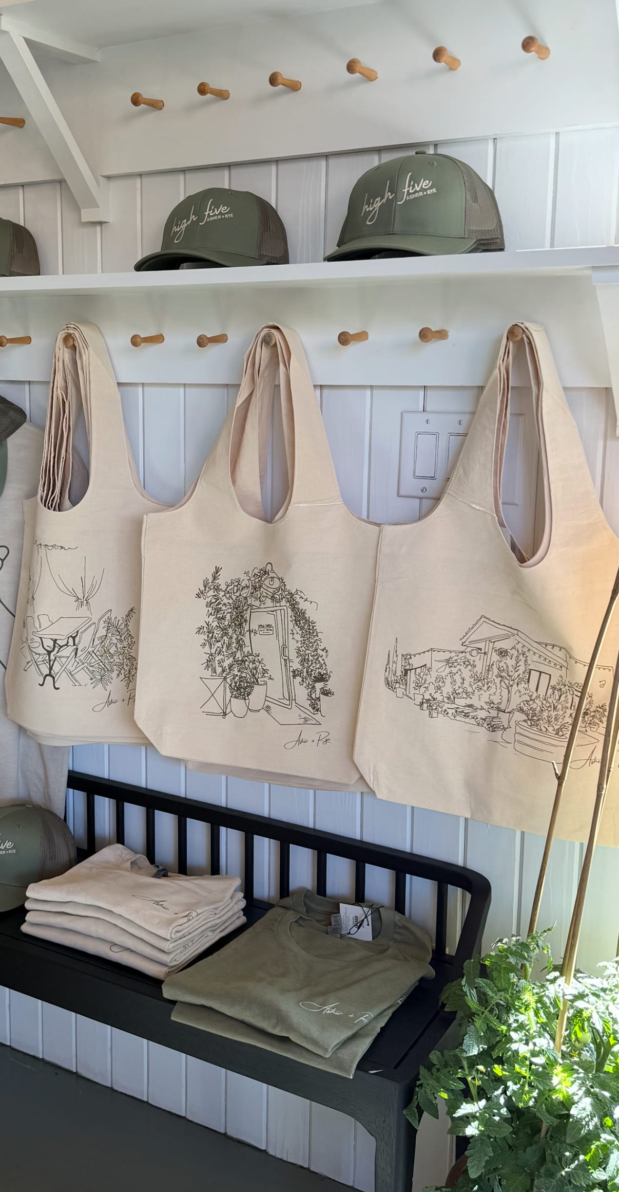 Illustrated by NoNo Flores during a live drawing session in the shop, this tote captures the corner where it all comes together. A small tribute to Jones and Whitaker and the rhythm of the café door opening and closing throughout the day.