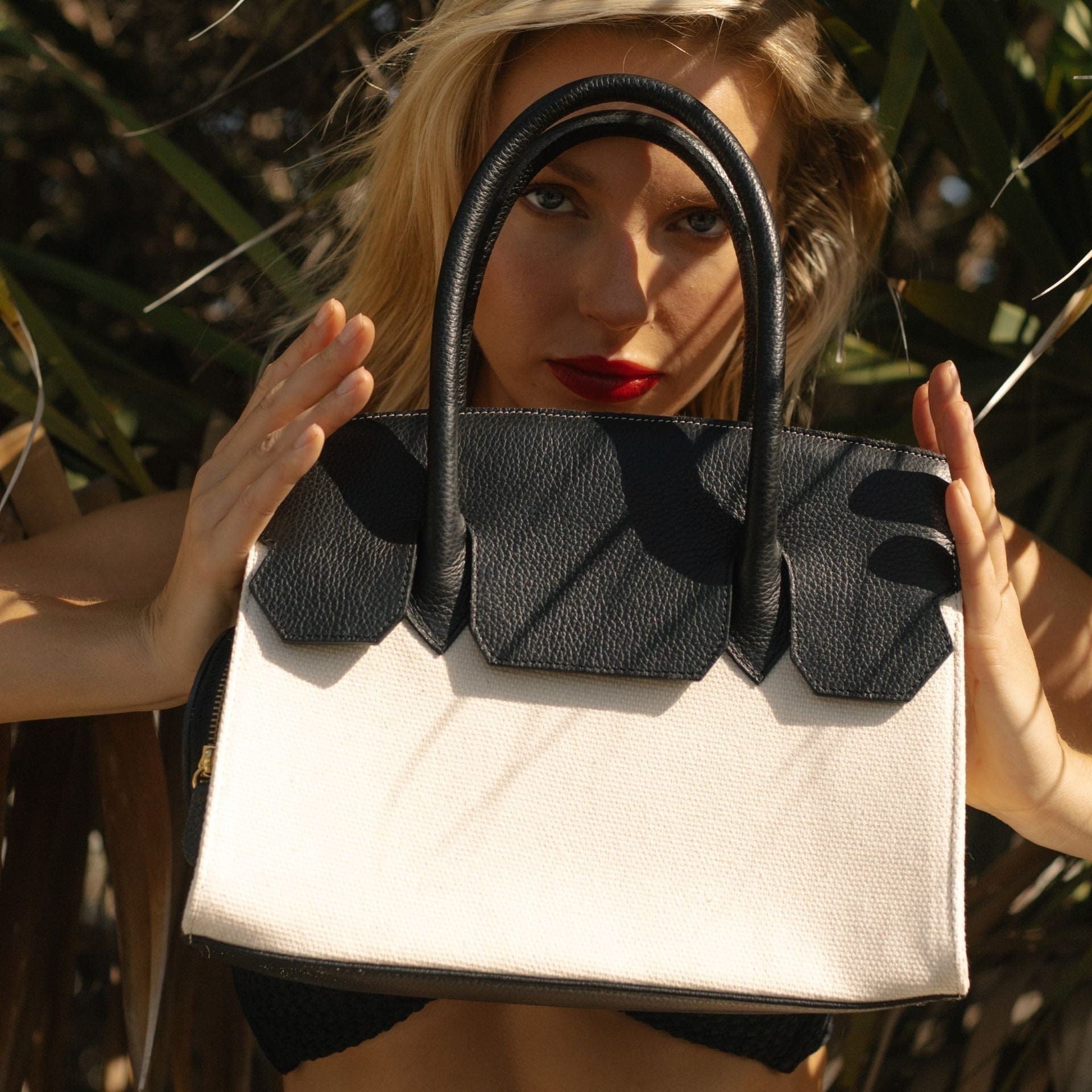 Bold and structured, the Emma Atuel is crafted from pebbled leather and Panama canvas for a timeless yet modern look. Spacious and refined, it features a secure zipper closure, a lined interior, and a removable strap for versatile wear, by hand or over the shoulder.