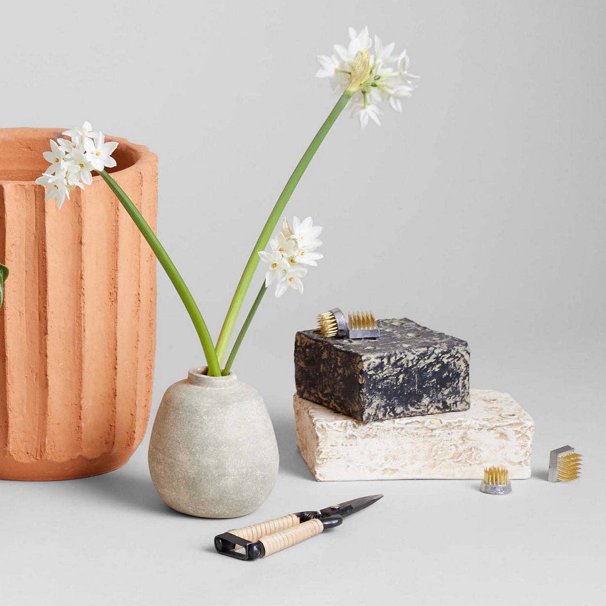 With a soft spring, an easy leather catch, and comfortable handles wrapped in wisteria rattan, these fine garden snips are ideal for cutting flowers and also work as desk scissors. Handcrafted by artisans in Sanjo, Japan, they’re made from a hard, super sharp Japanese carbon steel S58C.