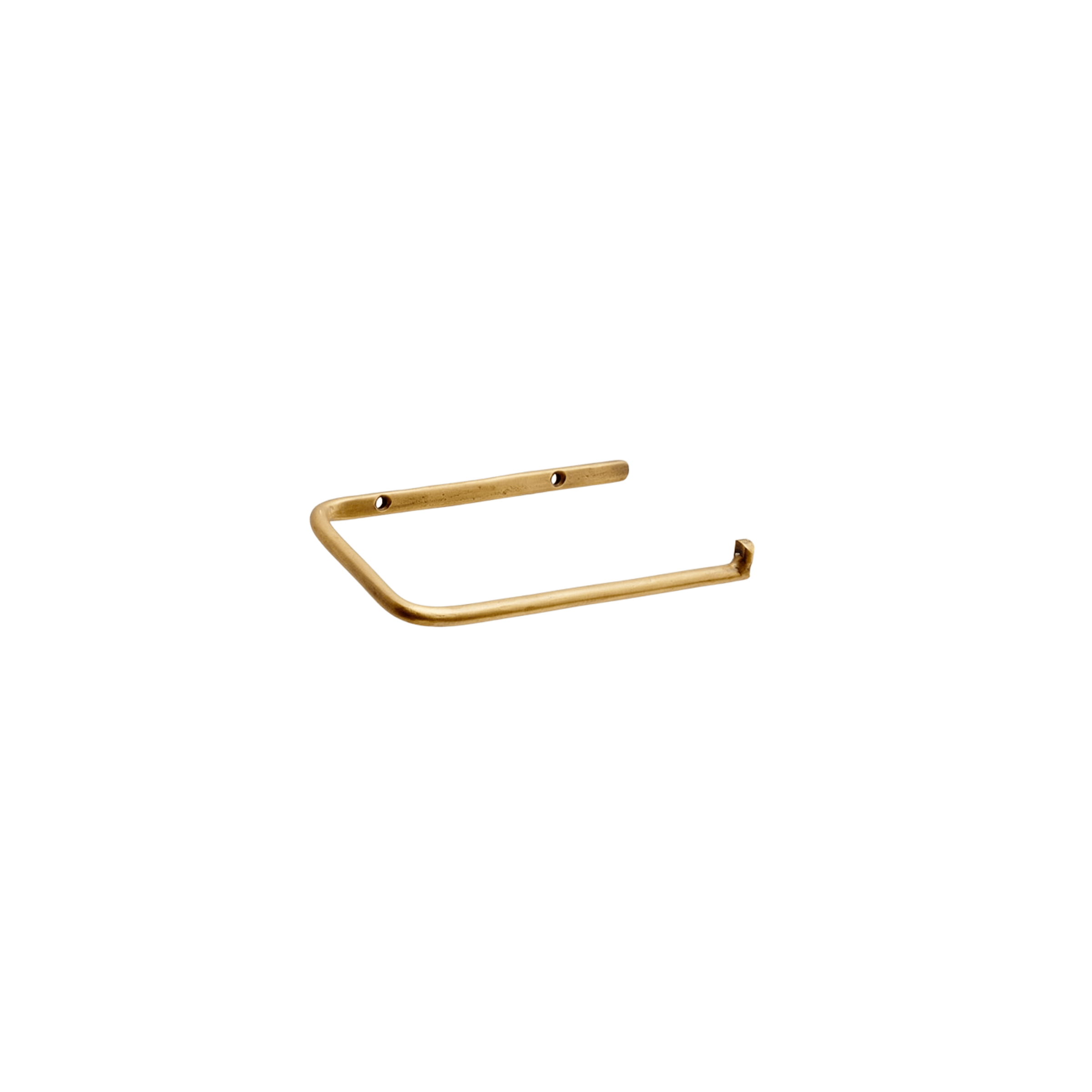 A simple brass toilet paper holder that keeps the bathroom feeling clean and uncluttered.