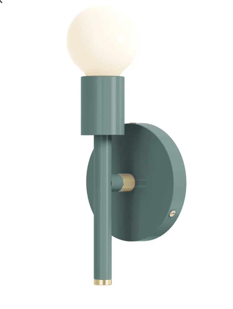 A vibrant addition to any space, this snug-to-the-wall sconce is perfect for any space. Powder coated and finished with brass accents give an elevated feel while saving space.