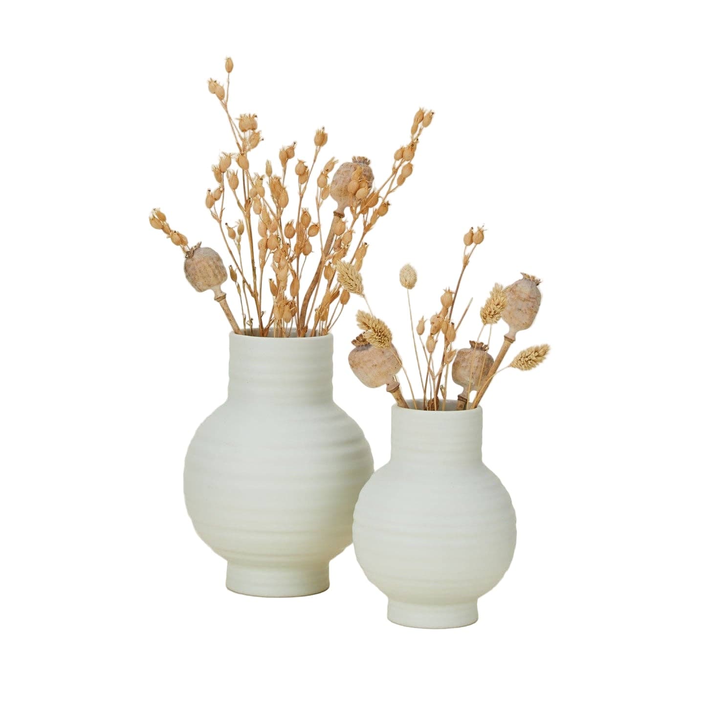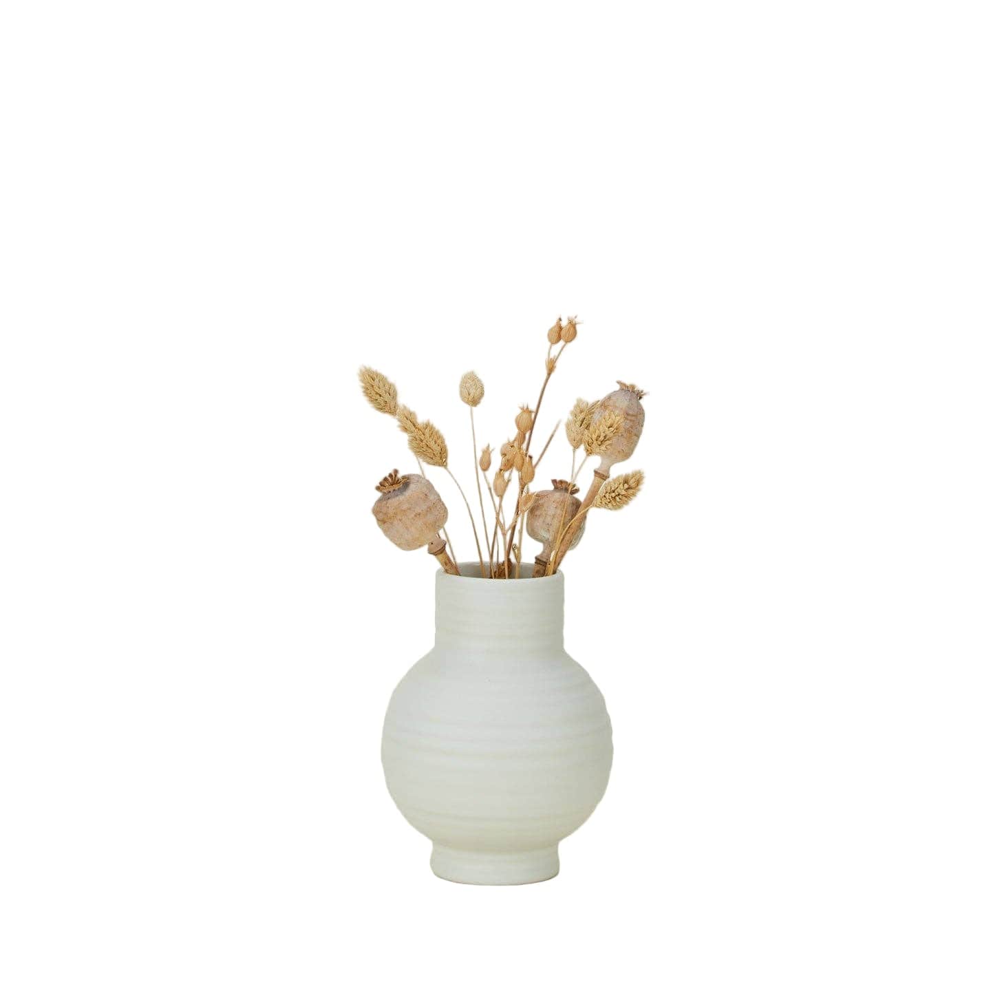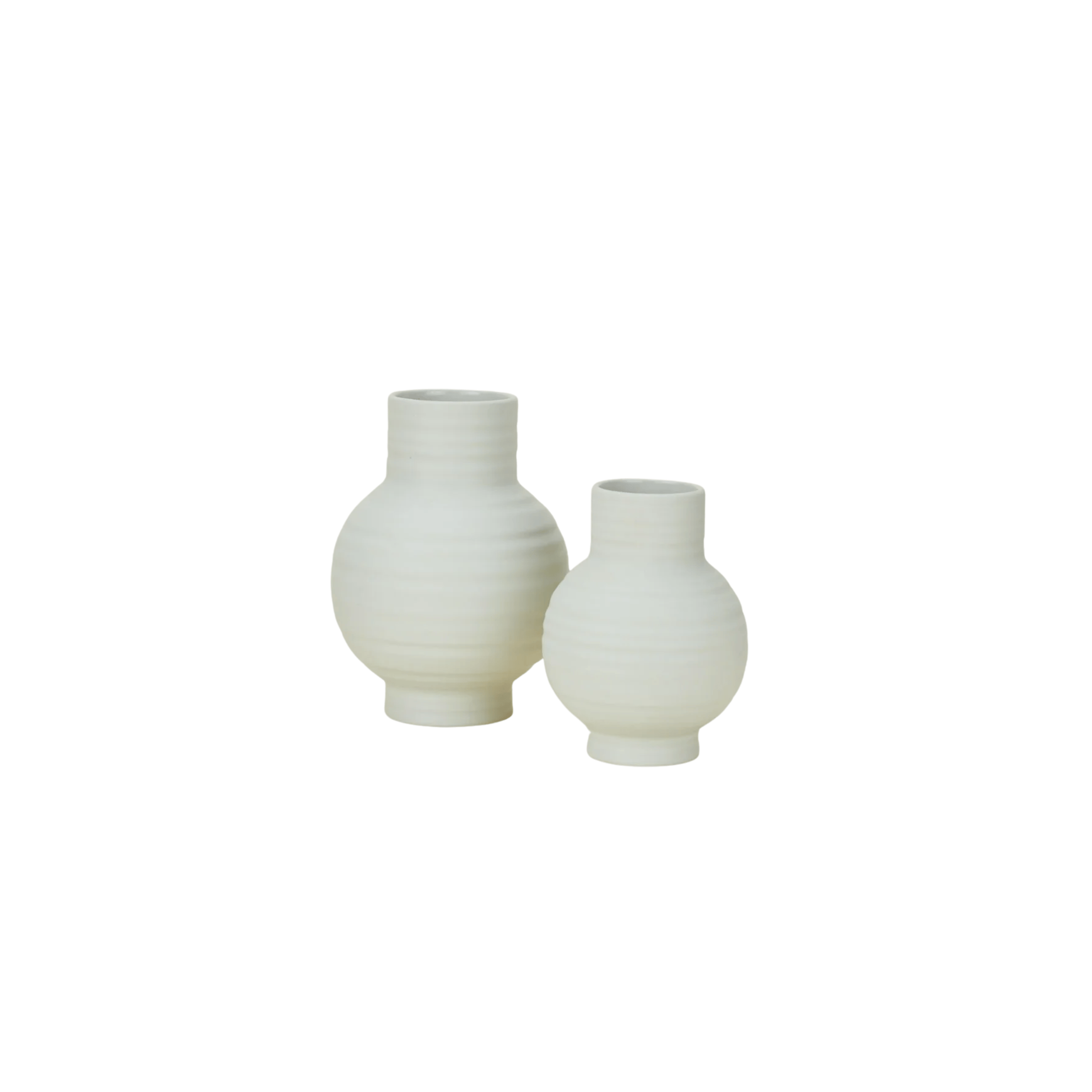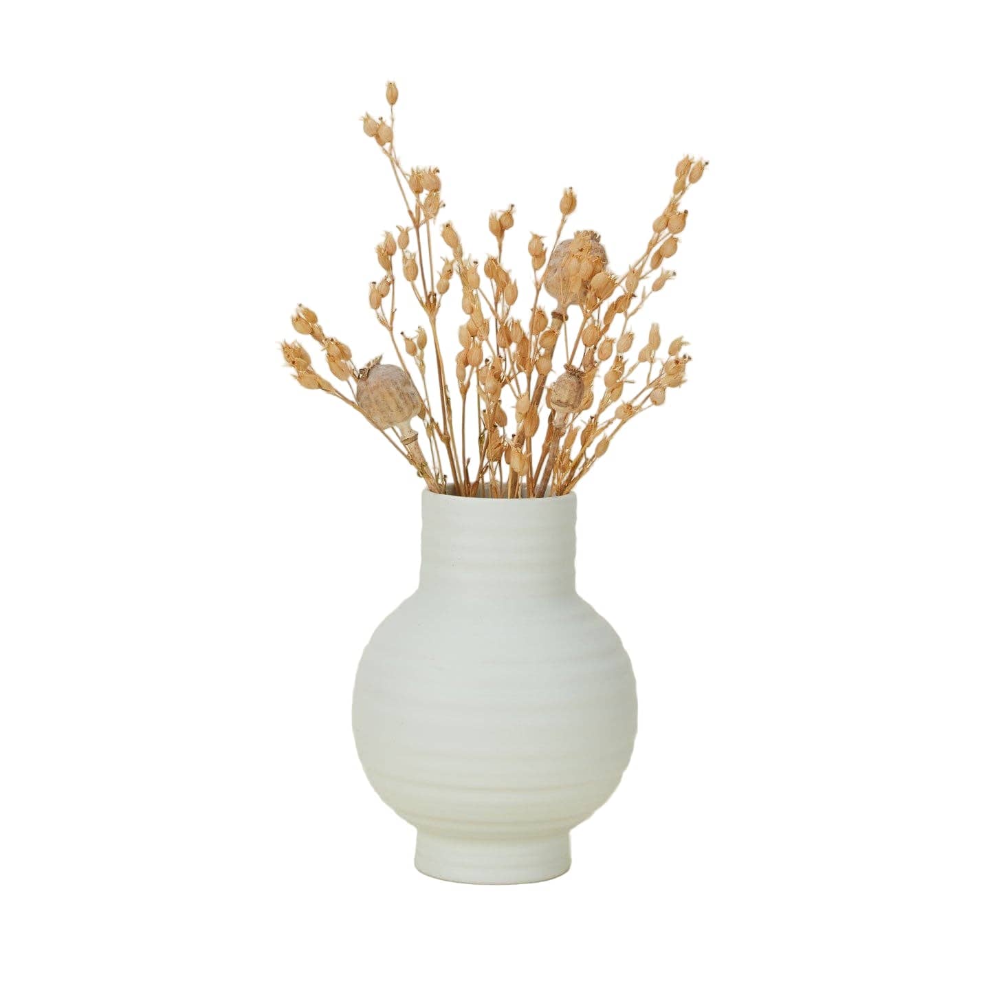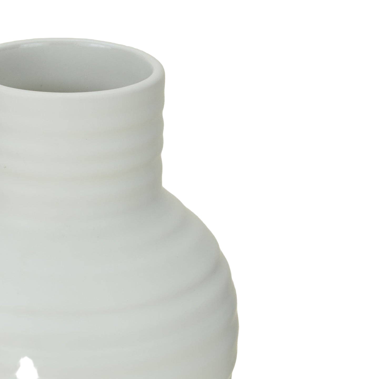A simple ceramic vase that works easily on a shelf, table, or windowsill. The ribbed surface and matte glaze add subtle texture without feeling decorative.
