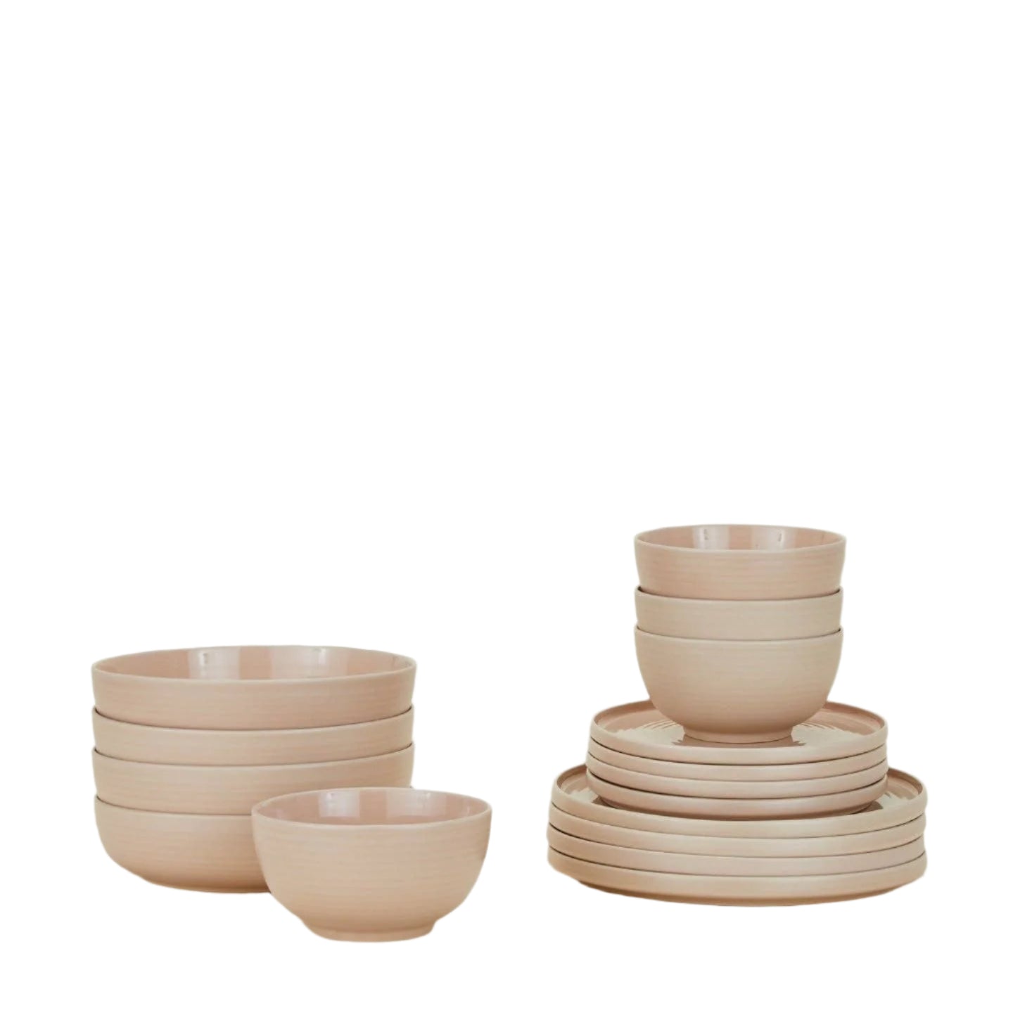Elevate your dining experience with this Essential Collection Dinnerware Set, featuring 16 meticulously crafted pieces in an elegant blush finish. This versatile set includes: