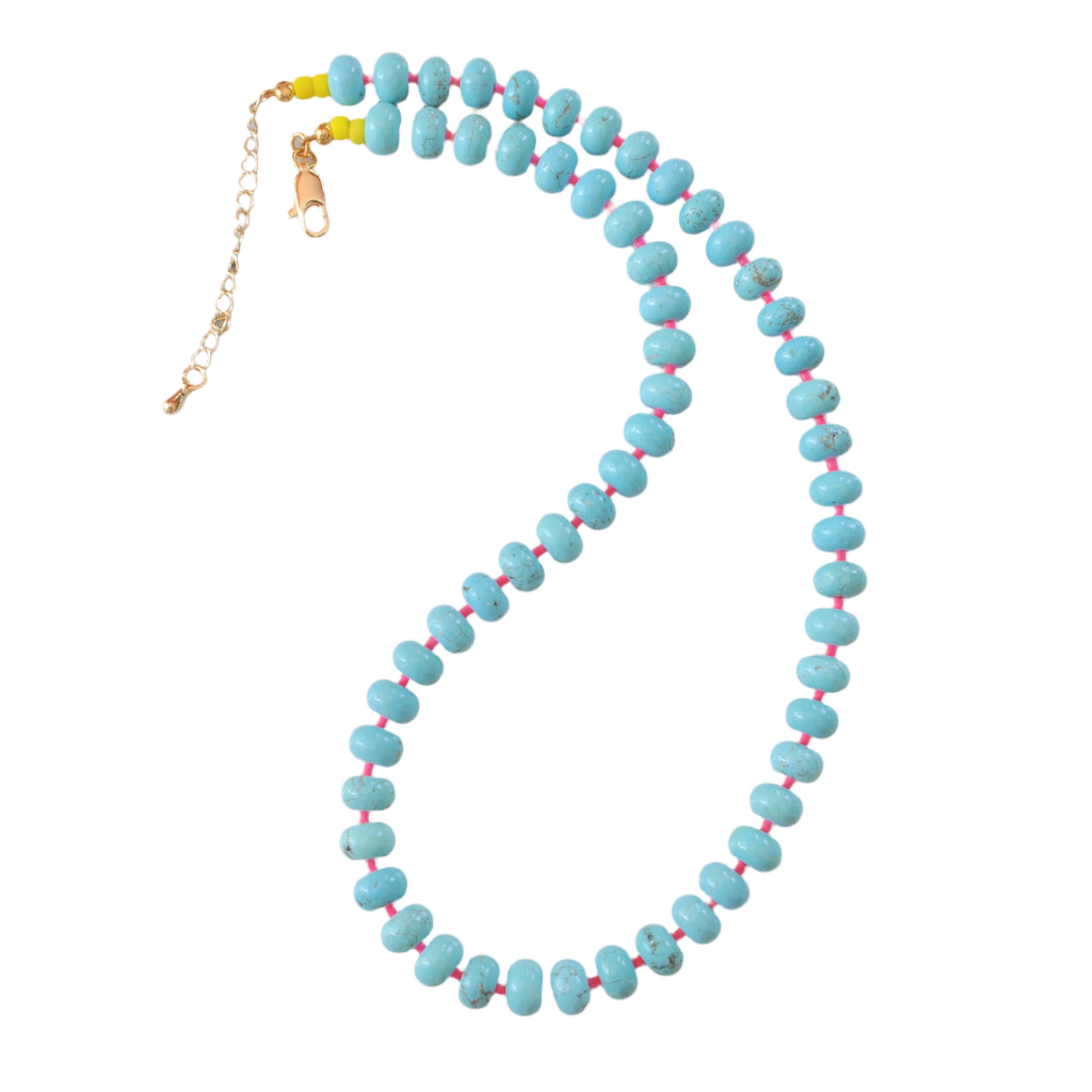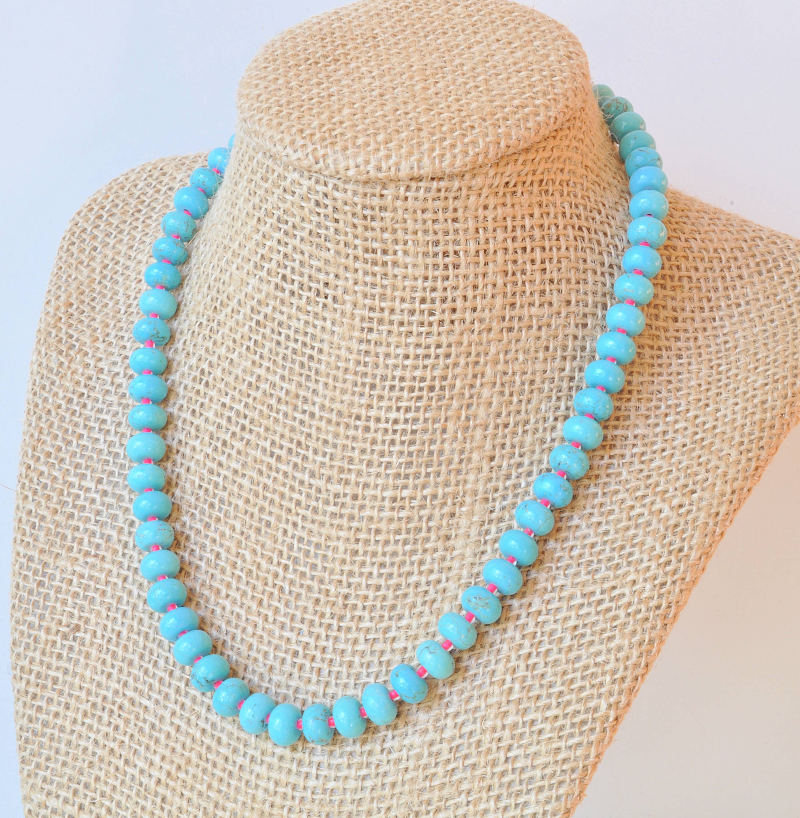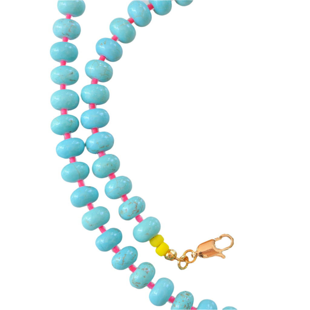 Turquoise with a pop of Neon Pink! These chunky beads offer a smooth charm with a bold and vibrant touch from the neon accents.