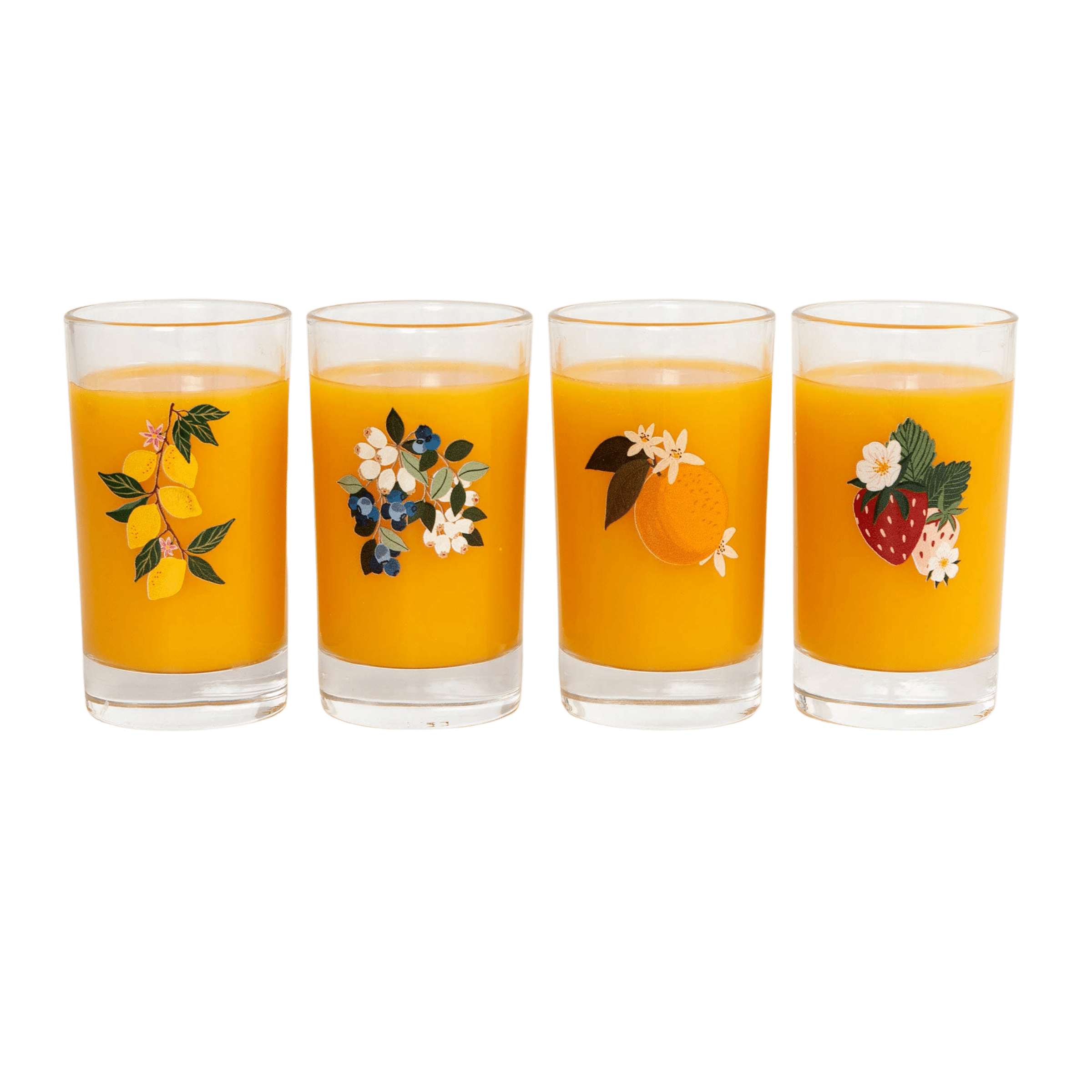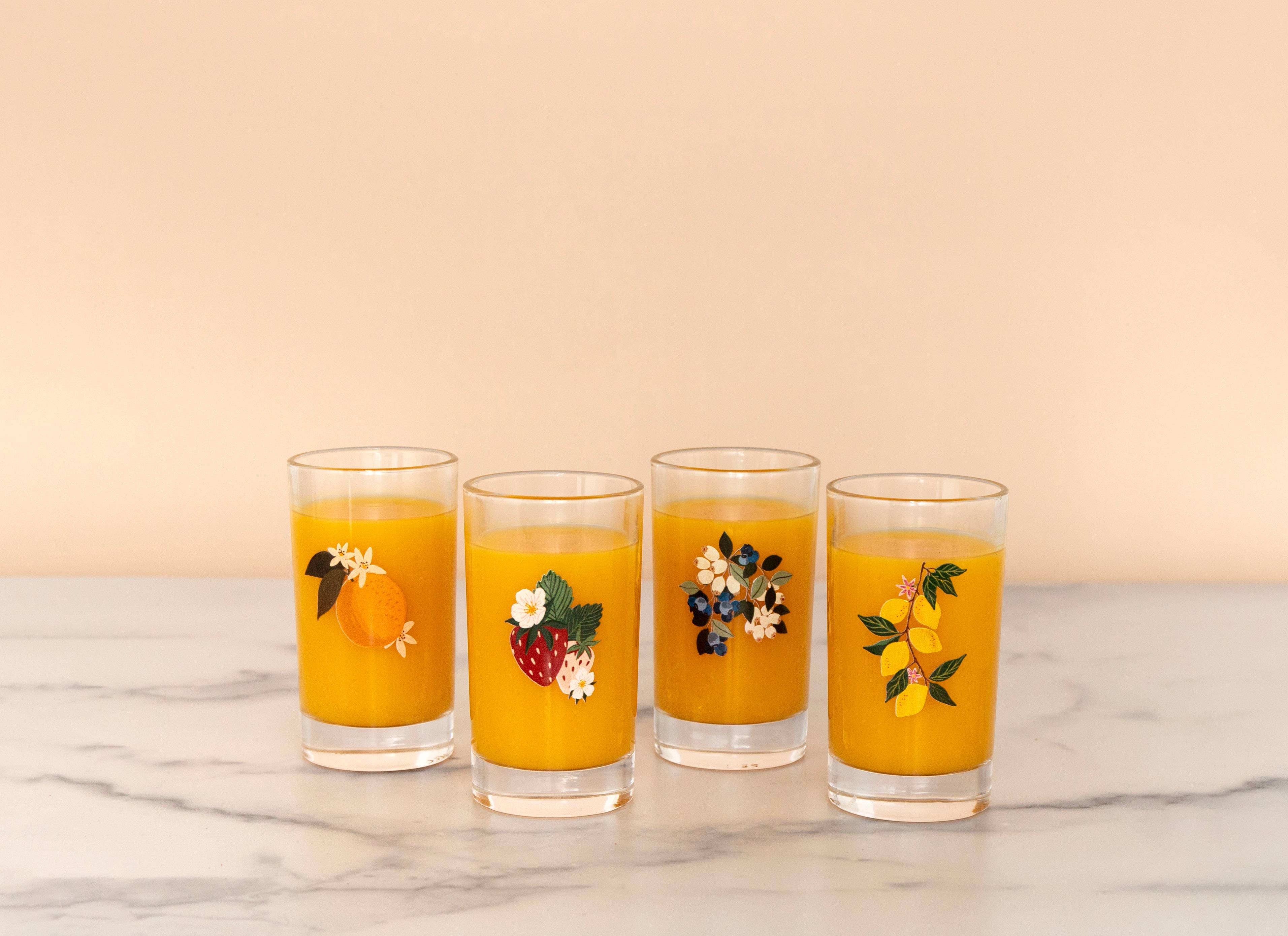 Add a touch of rustic elegance to your table with our Berry & Citrus Mini Juice Glass Set. Featuring hand illustrated designs of lemons, blueberries, oranges, and strawberries it is a unique set to add to your drinkware collection. Ideal for gifting to those who enjoy farming, gardening, or appreciate the beauty of fresh fruit. Give these at your next anniversary, birthday celebration, or housewarming party!