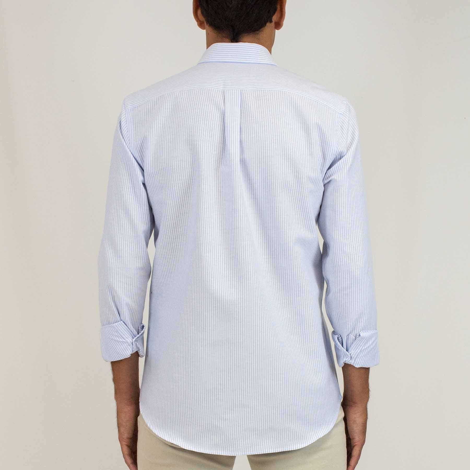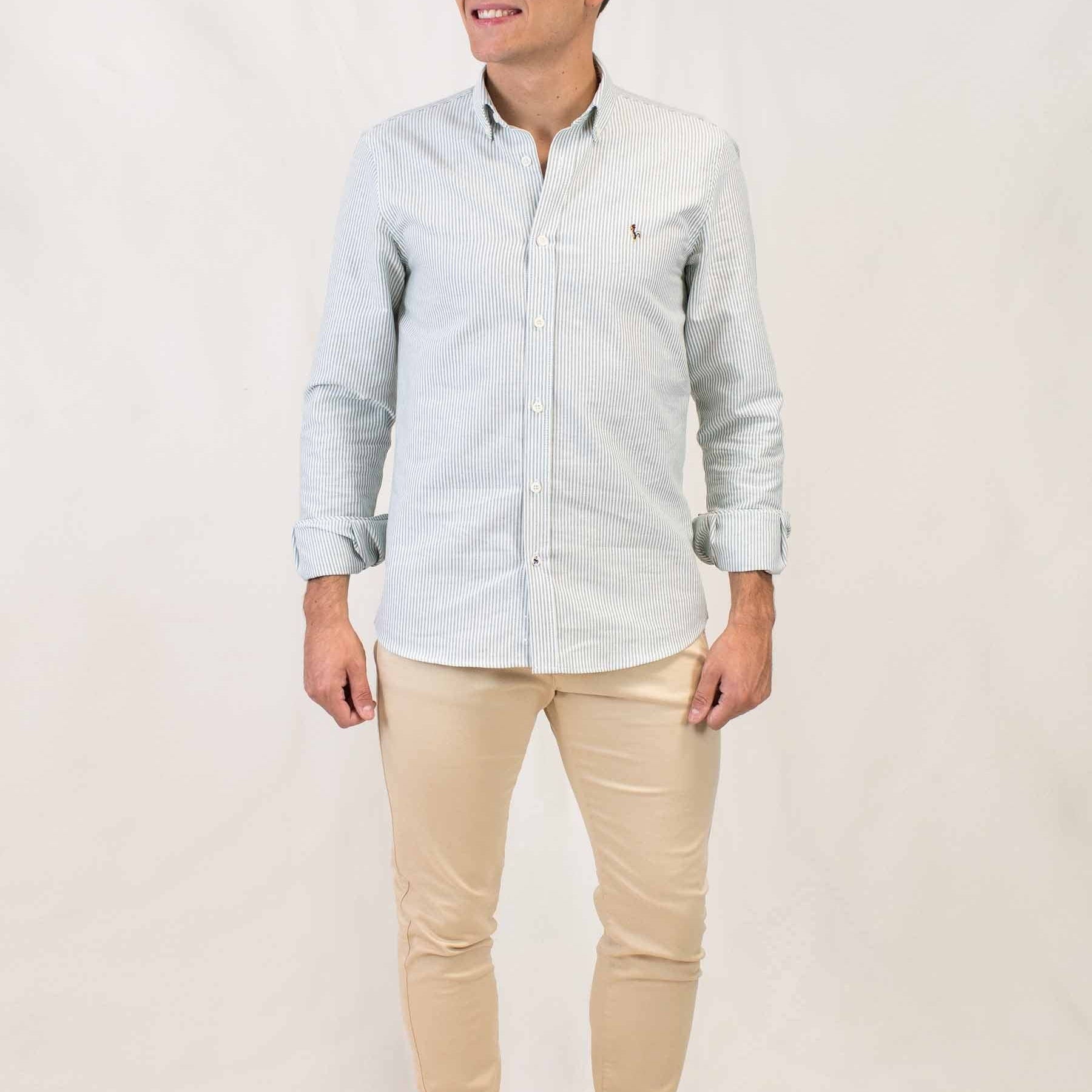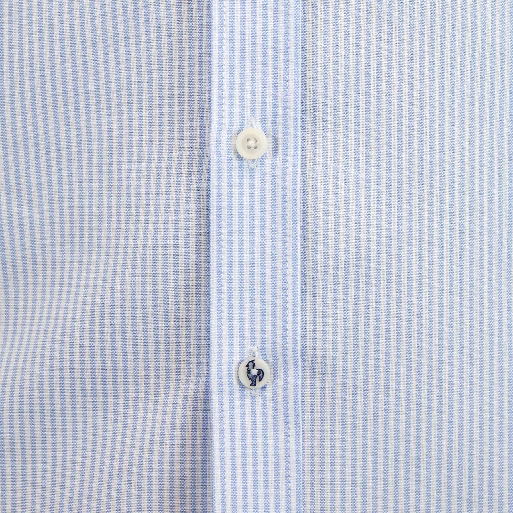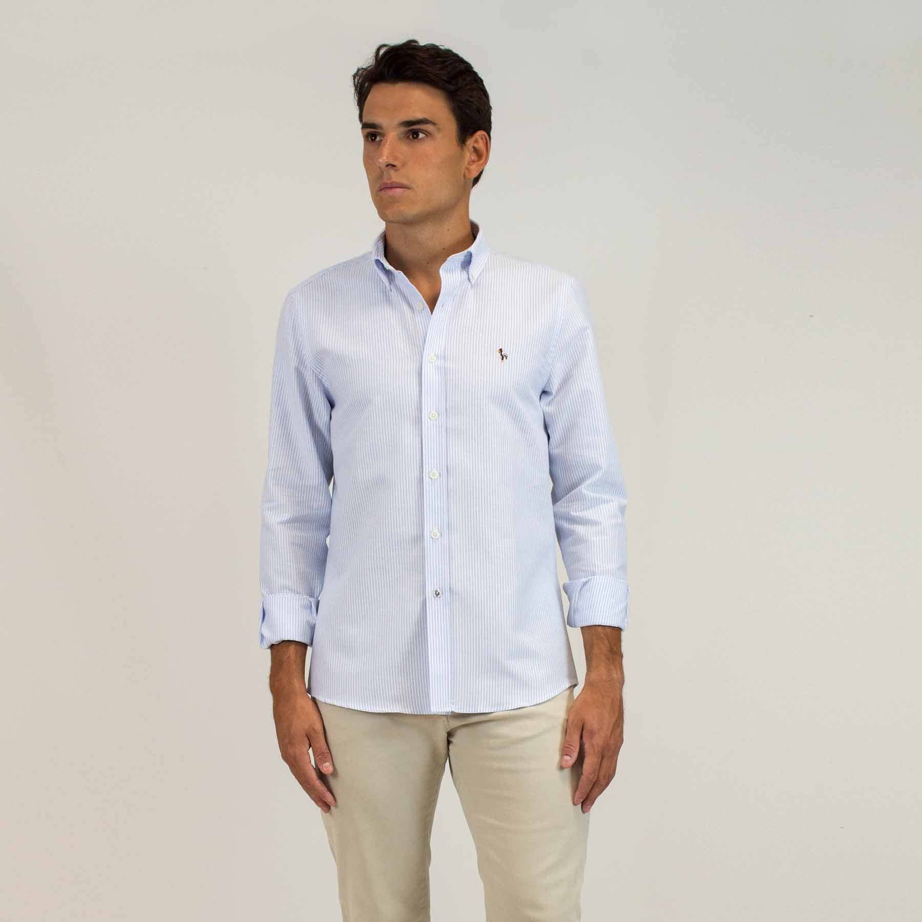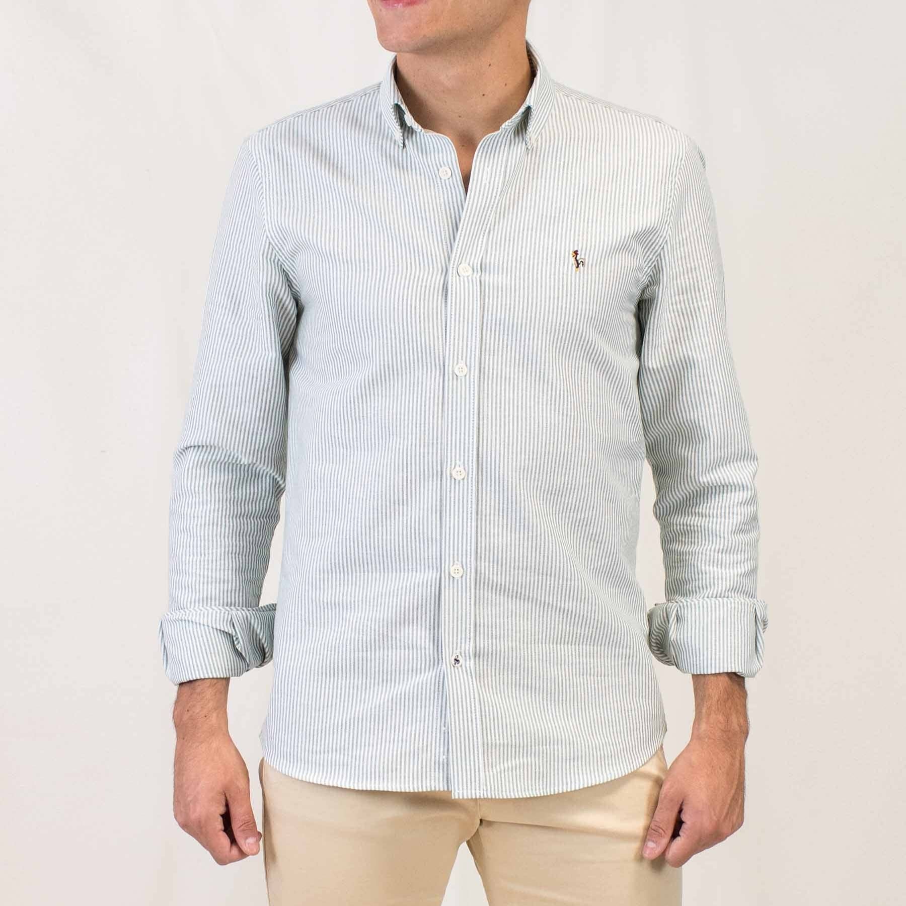 Patadegayo striped Oxford shirts are crafted in their workshop in Priego de Córdoba, Spain. Made with the finest fabric, these shirts exemplify exceptional craftsmanship, care, heart, and attention to detail. They feature a classic button-down collar and long sleeves. The embroidered rooster logo on the chest adds a fun touch, complemented by the distinctive rooster button.